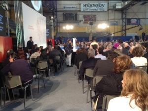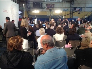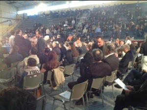 Στο γήπεδο Σπόρτινγκ όπου θα γίνει η παρουσίαση έχει μαζευτεί ήδη αρκετός κόσμος, για να παρακολουθήσει την ομιλία του Ανδρέα Λοβέρδου.