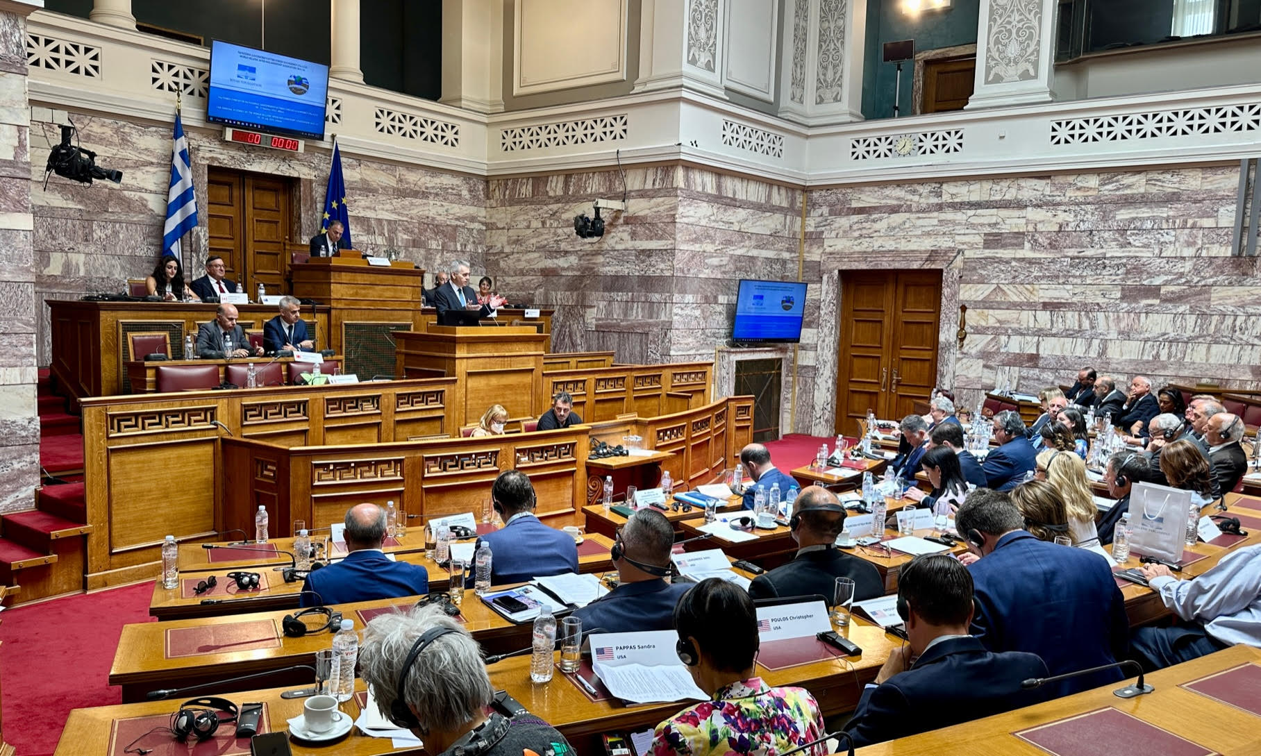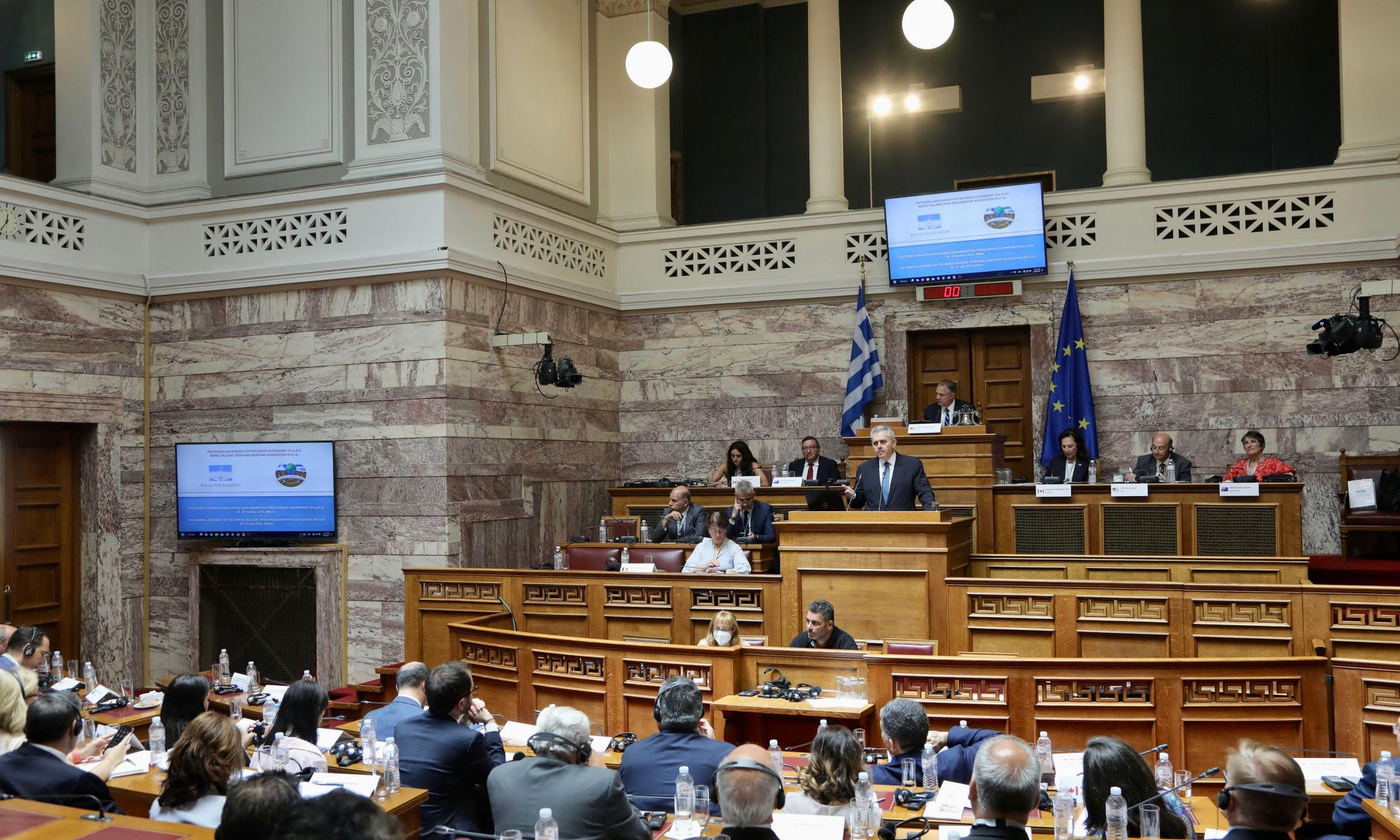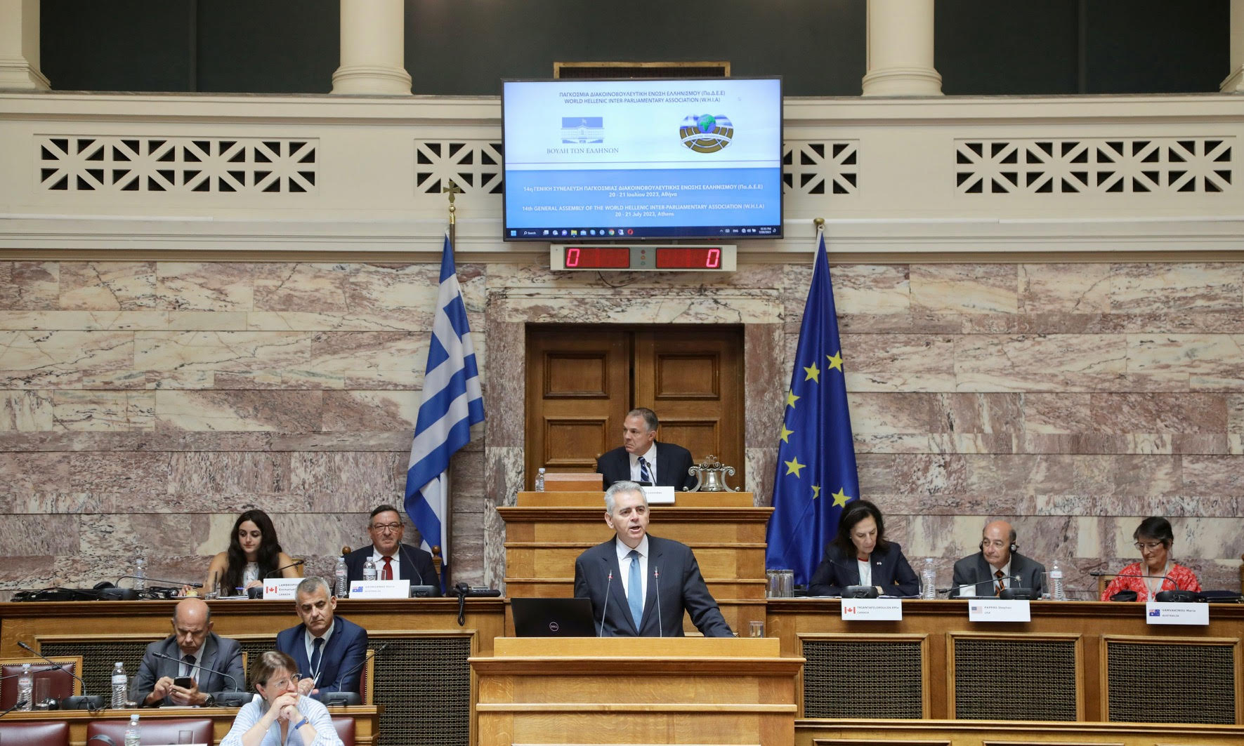 Ελλήνων, δρ Μάξιμος Χαρακόπουλος στον χαιρετισμό που απηύθυνε στους ελληνικής καταγωγής βουλευτές και γερουσιαστές που συμμετέχουν στην 14η Γενική Συνέλευση της Παγκόσμιας Διακοινοβουλευτικής Ένωσης Ελληνισμού (Πα.Δ.Ε.Ε.), που πραγματοποιείται στην Βουλή των Ελλήνων.