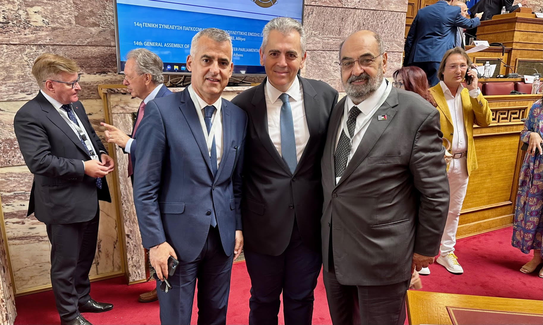 Συνεχίζοντας σημείωσε ότι με «την ιδιότητα του επικεφαλής ΓΓ της ΔΣΟ, ενός επίσης διακοινοβουλευτικού θεσμού, τρία μόλις έτη γηραιότερου από τον δικό σας, που συνενώνει στους κόλπους του Ορθόδοξους βουλευτές από 25 χώρες, είχα τη χαρά να συναντηθούμε και να συνεργαστούμε με την ηγεσία της ΠαΔΕΕ, τον αγαπητό Πρόεδρο, Γερουσιαστή του Ρόουντ Άιλαντ των ΗΠΑ, Λου Ραπτάκη αλλά και το σύνολο του προεδρείου της. Σε αυτές τις επαφές διαπιστώσαμε ότι μοιραζόμαστε κοινούς στόχους και επιδιώξεις, όπως είναι η ειρηνική επίλυση των διεθνών διαφορών, η καταδίκη του αναθεωρητισμού και της καταπάτησης των αρχών του διεθνούς δικαίου, όπως συμβαίνει αυτή τη στιγμή στην Ουκρανία –και τόσο παραστατικά μας περιέγραψε ο συνάδελφος από την Ουκρανία, με τον οποίο είχα χθες και ιδιαίτερη συνάντηση- η προώθηση της δημοκρατίας και του σεβασμού των ανθρωπίνων δικαιωμάτων».