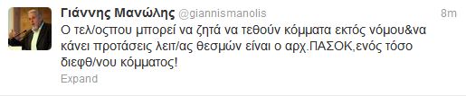Πρωινή επίθεση στον Ευάγγελο Βενιζέλο και το ΠΑΣΟΚ εξαπέλυσε ο Γιάννης Μανώλης.