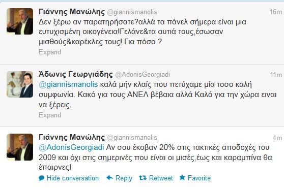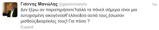 “Γελάνε και τ’ αυτιά τους σήμερα στα πάνελ”, σχολίασε στο twitter ο βουλευτής των Ανεξάρτητων Ελλήνων Γιάννης Μανώλης.