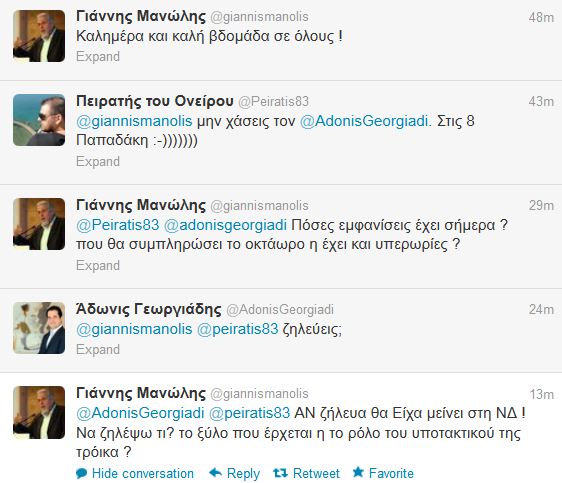 Πολύ πρωινός διάλογος στο twitter μεταξύ Γιάννη Μανώλη και Άδωνι Γεωργιάδη. “Πολιτικός” διάλογος…