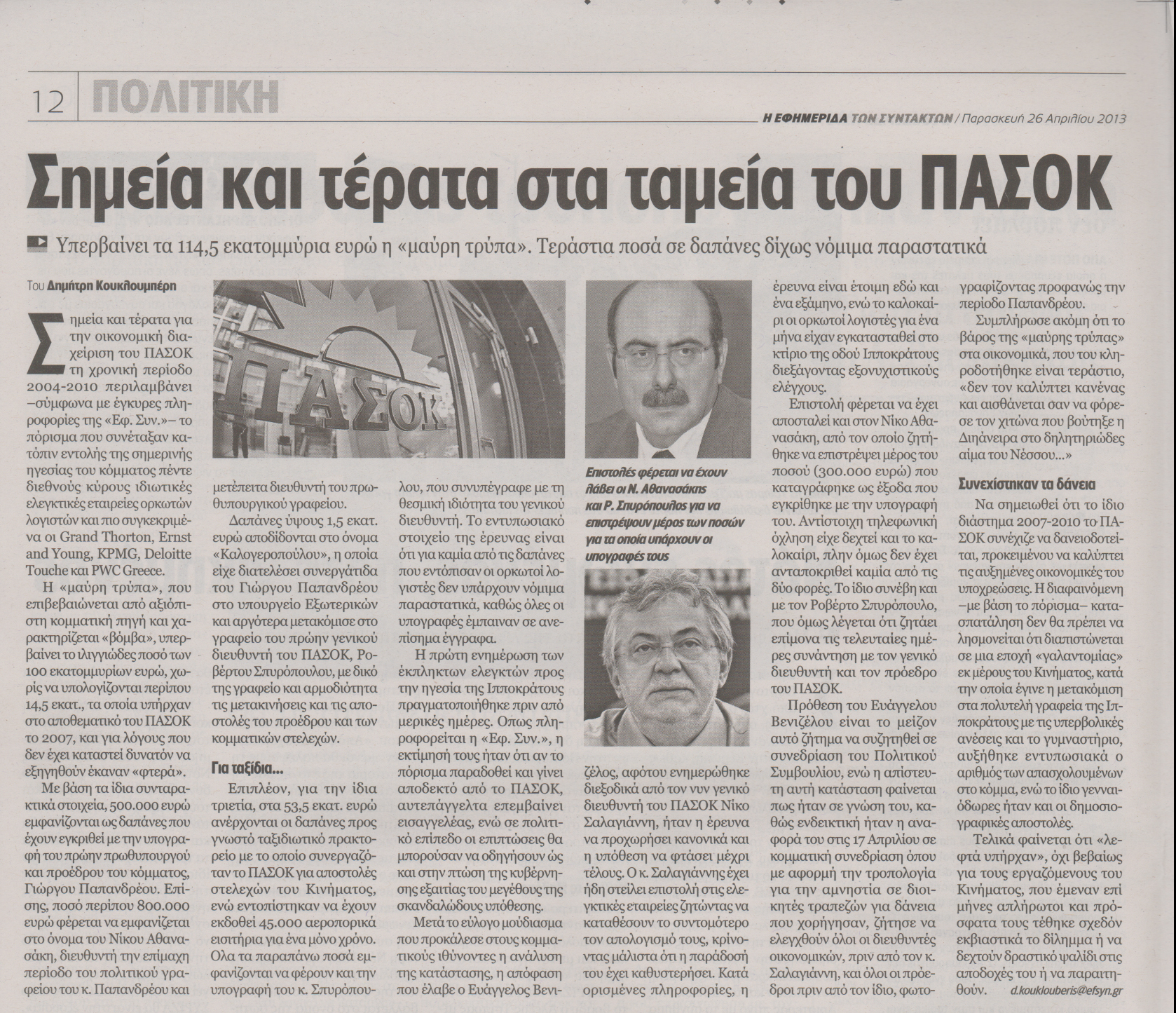 «Μαύρη τρύπα» στα ταμεία του ΠΑΣΟΚ που υπερβαίνει τα 100 εκατ. ευρώ, εντοπίστηκε μετά τον έλεγχο πέντε διεθνούς κύρους εταιριών ορκωτών λογιστών.