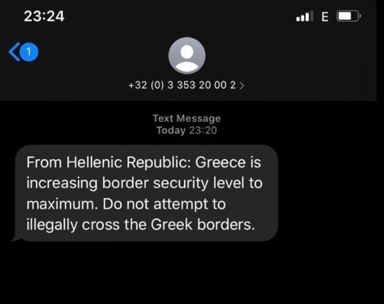 Η ελληνική κυβέρνηση έχει προχωρήσει στην αποστολή SMS-μηνυμάτων, προκειμένου να ενημερωθούν όσοι πρόσφυγες και μετανάστες προσπαθούν να φτάσουν στα ελληνικά σύνορα εξαιτίας των ψευδών ειδήσεων που έχουν διαδοθεί τις τελευταίες ημέρες. «Μην αποπειραθείτε να περάσετε παράνομα τα ελληνικά σύνορα» γράφει μεταξύ άλλων το μήνυμα.