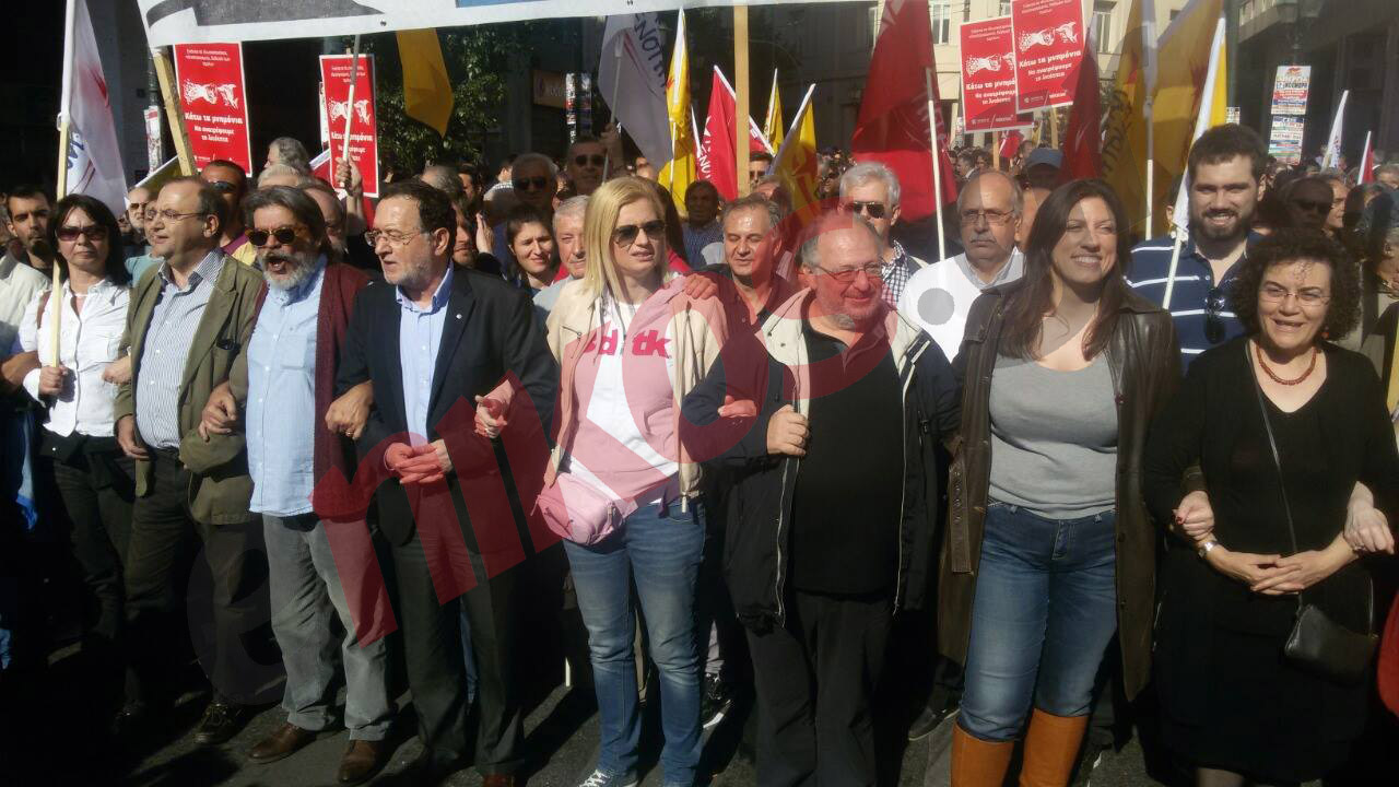 Στο μπλοκ της Λαϊκής Ενότητας παραβρέθηκαν επίσης ο επικεφαλής της παράταξης, Παναγιώτης Λαφαζάνης, ο Δημήτρης Στρατούλης και ο Στάθης Σταυρόπουλος.