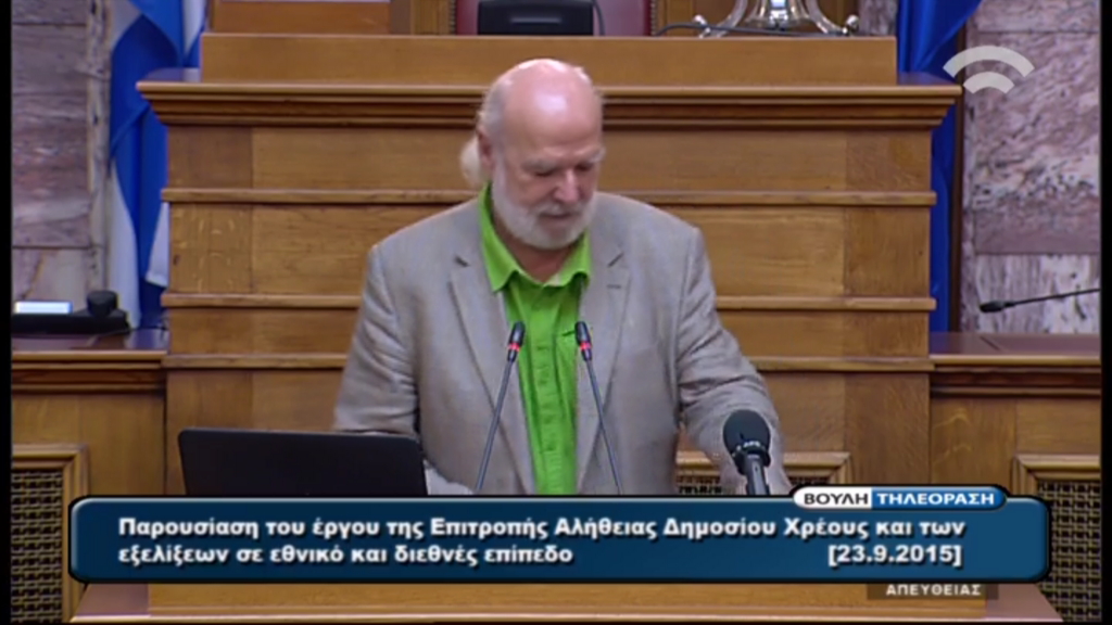 Τα βλέμματα όλων τράβηξε ο Ερίκ Τουσέν στη συνεδρίαση για την παρουσίαση του έργου της Επιτροπής Αλήθειας Δημοσίου Χρέους και των εξελίξεων σε εθνικό και διεθνές επίπεδο.