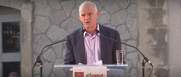 Με νέα εμφάνιση παρουσιάστηκε στην ομιλία του στην Πάτρα ο πρώην Πρωθυπουργός και νυν πρόεδρος του ΚΙΔΗΣΟ, Γιώργος Παπανδρέου.