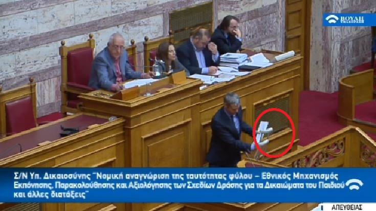 Με πατερίτσες ανέβηκε στο βήμα της βουλής ο βουλευτής της ΝΔ Κώστας Καραγκούνης, κατά τη διάρκεια της συζήτησης του νομοσχεδίου για την αλλαγή ταυτότητας φύλου. Ο βουλευτής Αιτωλοακαρνανίας και αναπληρωτής τομεάρχης Δικαιοσύνης και Ανθρωπίνων Δικαιωμάτων της ΝΔ ήταν εισηγητής του κόμματος στην πρώτη ανάγνωση του νομοσχεδίου στην αρμόδια επιτροπή της βουλής όμως αντικαταστάθηκε μετά τον τραυματισμό του. Ο κ. Καραγκούνης οδηγήθηκε στο χειρουργείο για χιαστούς και ρήξη μηνίσκου.