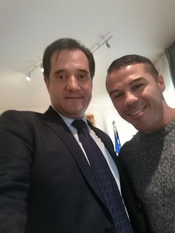 Ο αντιπρόεδρος της ΝΔ, Άδωνις Γεωργιάδης ανέβασε στον λογαριασμό του στο twitter φωτογραφίες από τη συνάντηση που είχε νωρίτερα στο γραφείο του, με τον πρωταθλητή του kick boxing Μιχάλη Ζαμπίδη.
