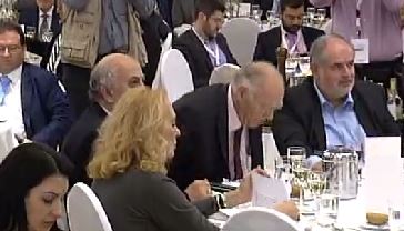 Ο κ. Λεβέντης κάθεται δίπλα στον υφυπουργό Εξωτερικών, Γιάννη Αμανατίδη.