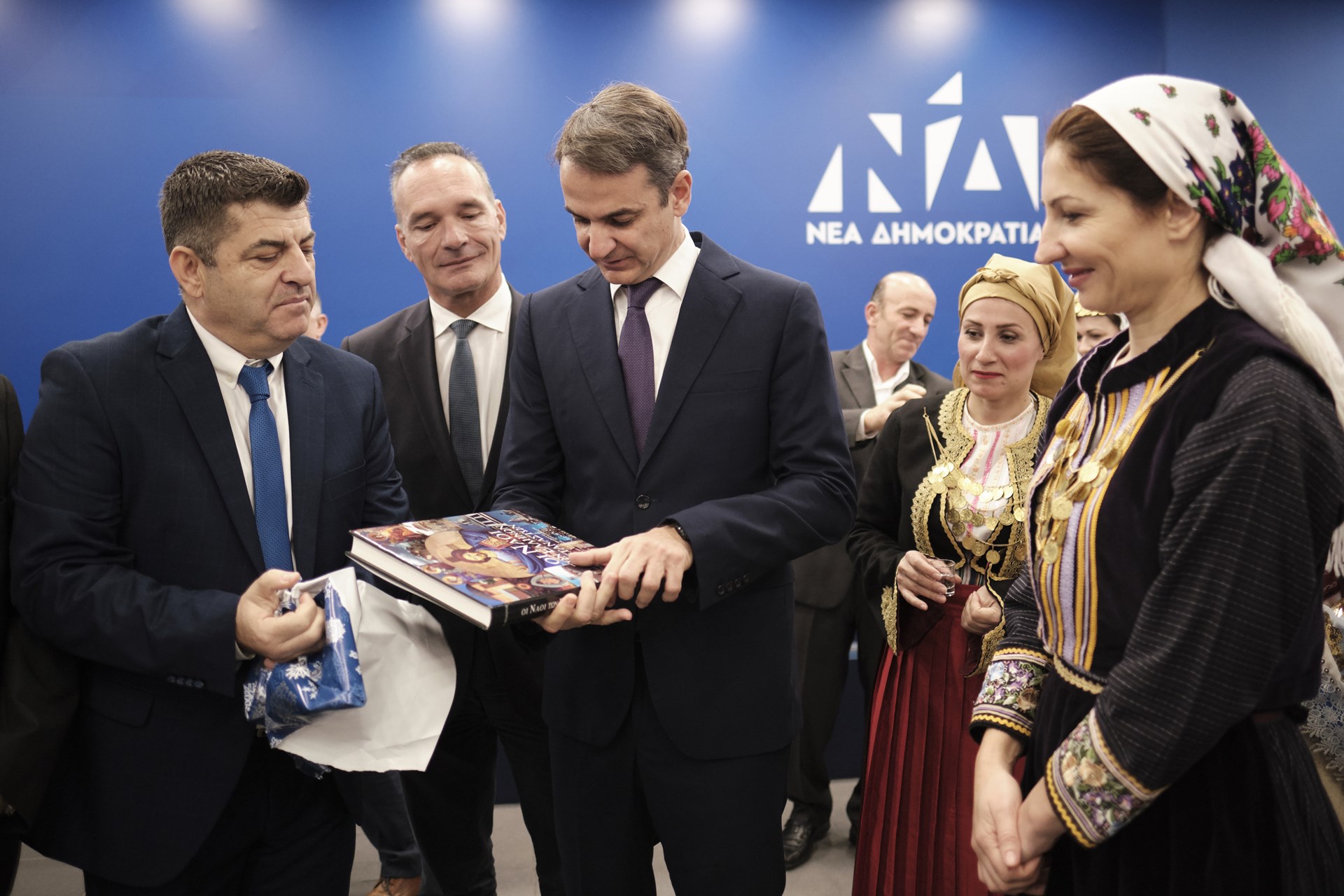 Τα κάλαντα από τον Σύλλογο Βορειοηπειρωτών «Ομόνοια», τον Σύλλογο Κρητών «Ασή Γωνιά» και τα παιδιά του κέντρου προστασίας ανηλίκων «Φάρος του Κόσμου» άκουσε ο πρόεδρος της ΝΔ, Κυριάκος Μητσοτάκης, στα γραφεία του κόμματος.Τα μέλη του Συλλόγου Βορειοηπειρωτών «Ομόνοια» ευχαρίστησαν τον πρόεδρο της Νέας Δημοκρατίας για τη στήριξη που παρέχει στην ελληνική ομογένεια της Βορείου Ηπείρου, με τον κ. Μητσοτάκη να απαντά πως παρακολουθεί στενά τις εξελίξεις που αφορούν στα θέματα της ελληνικής ομογένειας στην Αλβανία, επισημαίνοντας ότι η ευρωπαϊκή προοπτική της γειτονικής χώρας εξαρτάται από την εν γένει συμπεριφορά της.