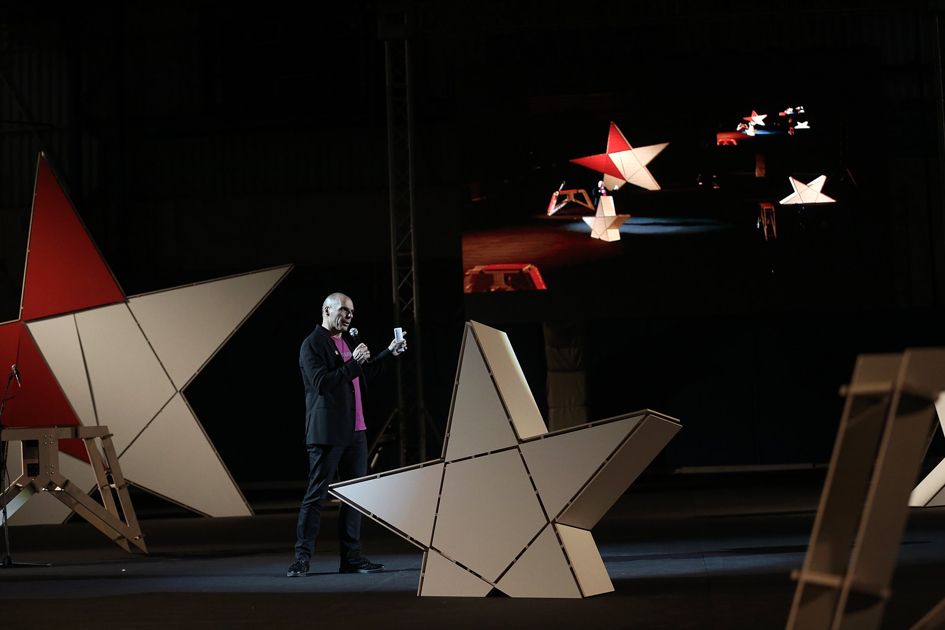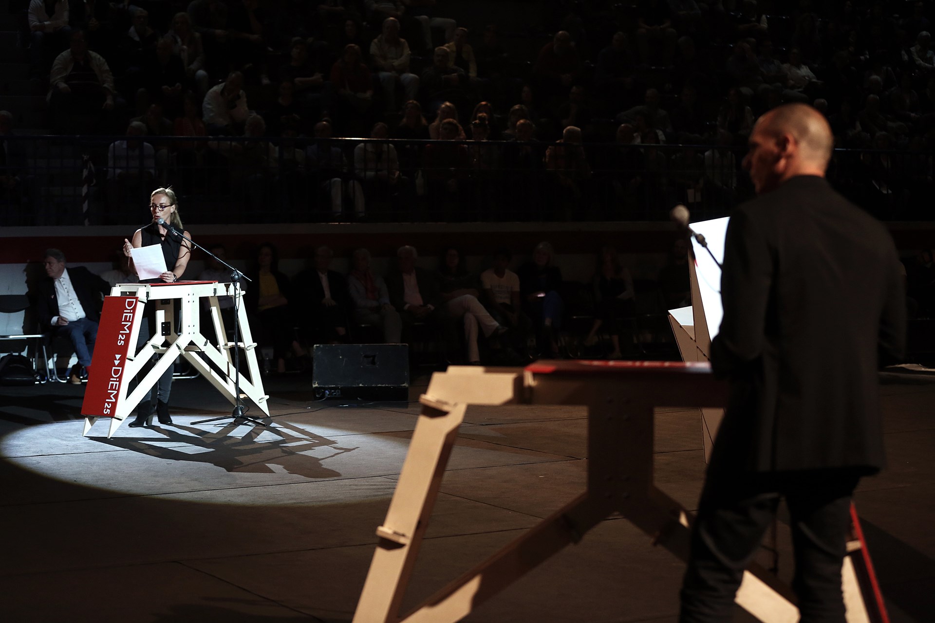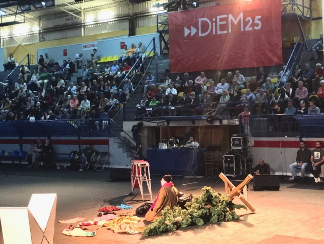 Με ένα πρωτότυπο τρόπο επέλεξε ο Γιάνης Βαρουφάκης, να ανοίξει την εκδήλωση του DiEM25 στο Σπόρτινγκ. Με ένα θεατρικό μονόπρακτο, «Το Δέντρο» που περιγράφει γλαφυρά τις αλλαγές που συντελέστηκαν στις συνθήκες διαβίωσης των Ελλήνων από την υπαγωγή της χώρας στο πρώτο μνημόνιο το 2010, και με χαιρετισμούς από μέλη του DiEM25 σε ολόκληρο τον κόσμο , όπως τον Νόαμ Τσόμσκι , τον Μπράιαν Ίνο και την Ναόμι Κλάιν, ο Γιάνης Βαρουφάκης συστήθηκε στο Αθηναϊκό κοινό.