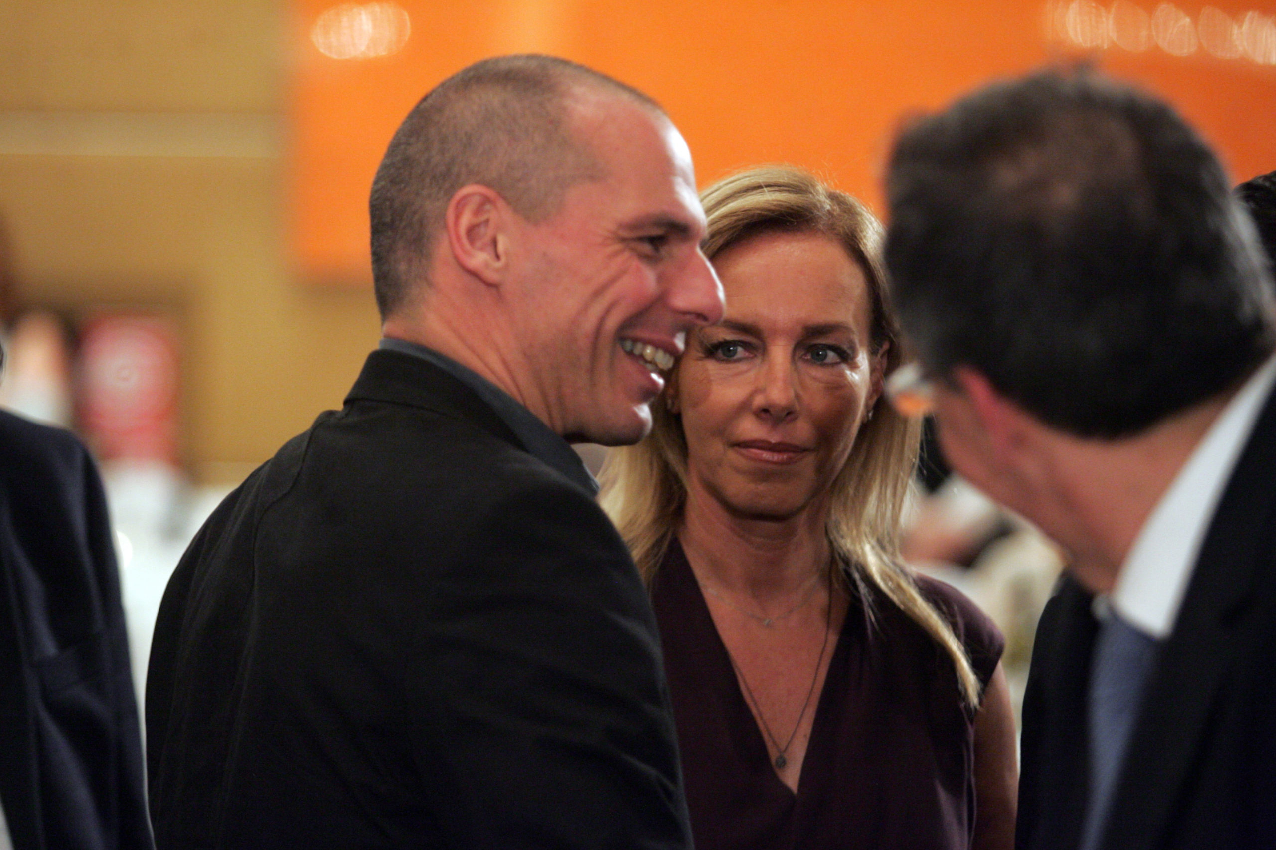 “Αχώριστοι” είναι ο Γιάνης Βαρουφάκης και η Δανάη Στράτου. Η σύζυγος του υπουργού Οικονομικών τον συνόδευσε στο επίσημο δείπνο του συνεδρίου του Economist.