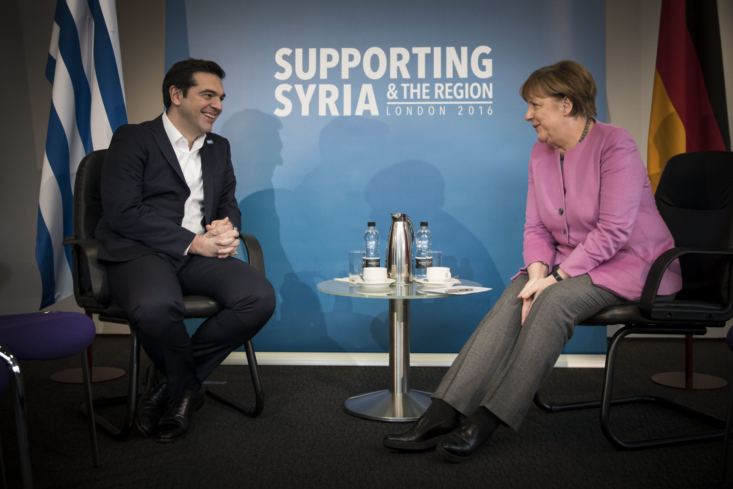 Συνάντηση με την Γερμανίδα Καγκελάριο, Άνγκελα Μέρκελ είχε νωρίτερα ο Πρωθυπουργός Αλέξης Τσίπρας, στο περιθώριο της Διάσκεψης Δωρητών για τους Σύρους πρόσφυγες, στο Λονδίνο.