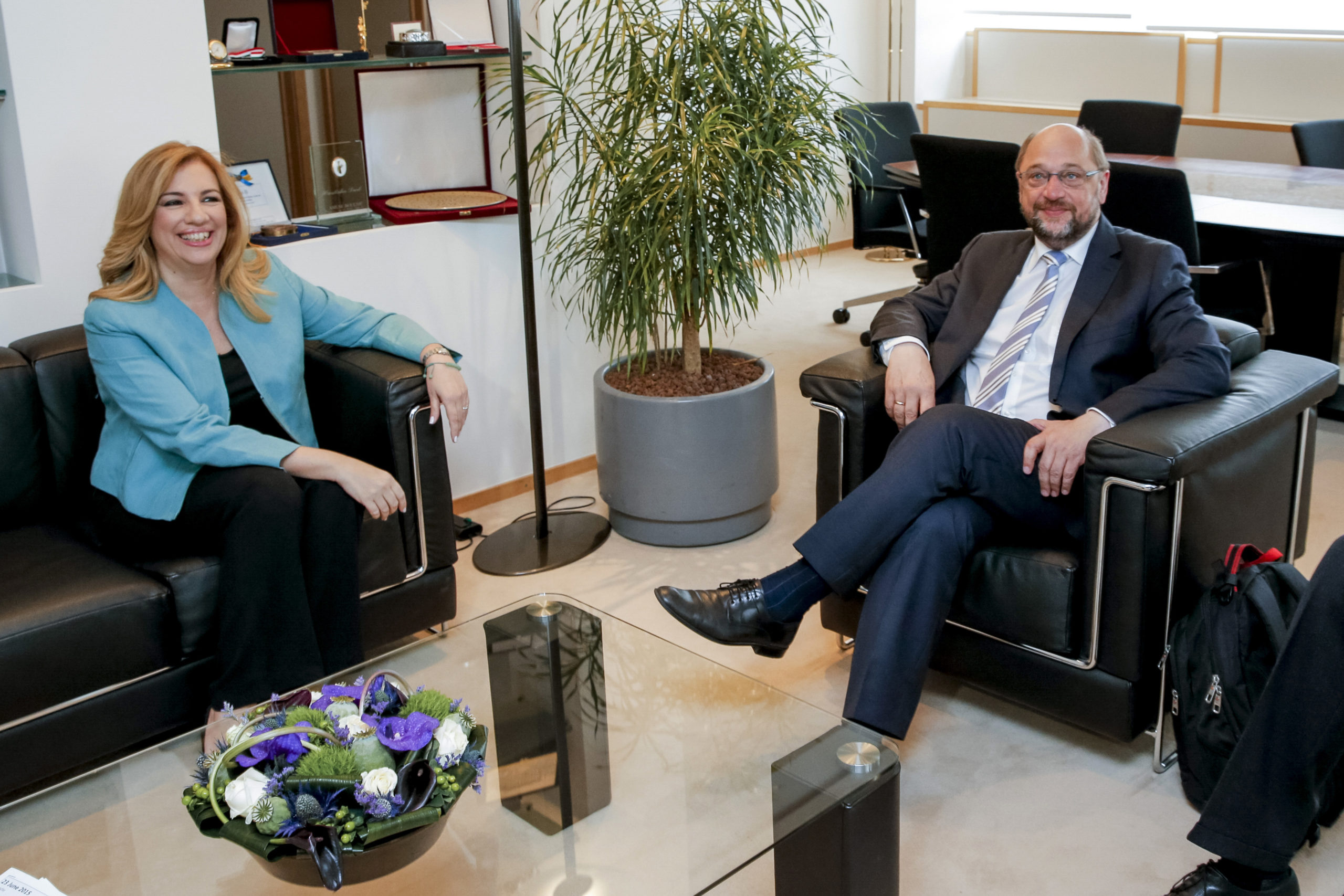 Συνάντηση με τον Πρόεδρο του Ευρωπαϊκού Κοινοβουλίου, Μάρτιν Σουλτς είχε η πρόεδρος του ΠΑΣΟΚ, Φώφη Γεννηματά.