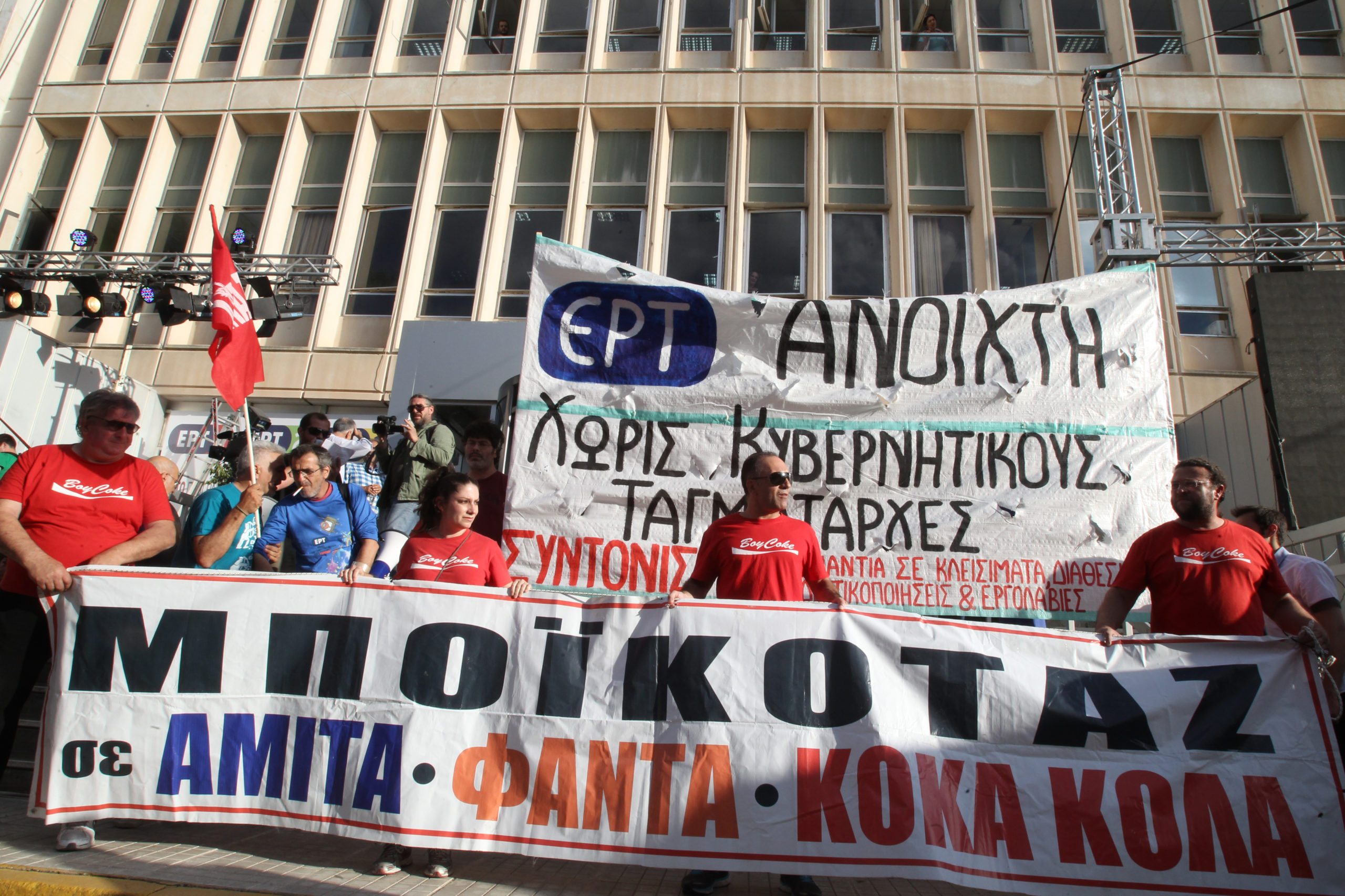 Αίσθηση προκάλεσε η διαμαρτυρία των εργαζομένων της ΕΡΤ που αντιτίθενται στις διατάξεις του νομοσχεδίου για την επαναλειτουργία του δημόσιου ραδιοτηλεοπτικού φορέα αναφορικά με τη σύνθεση του ΔΣ και τα συνδικαλιστικά.
