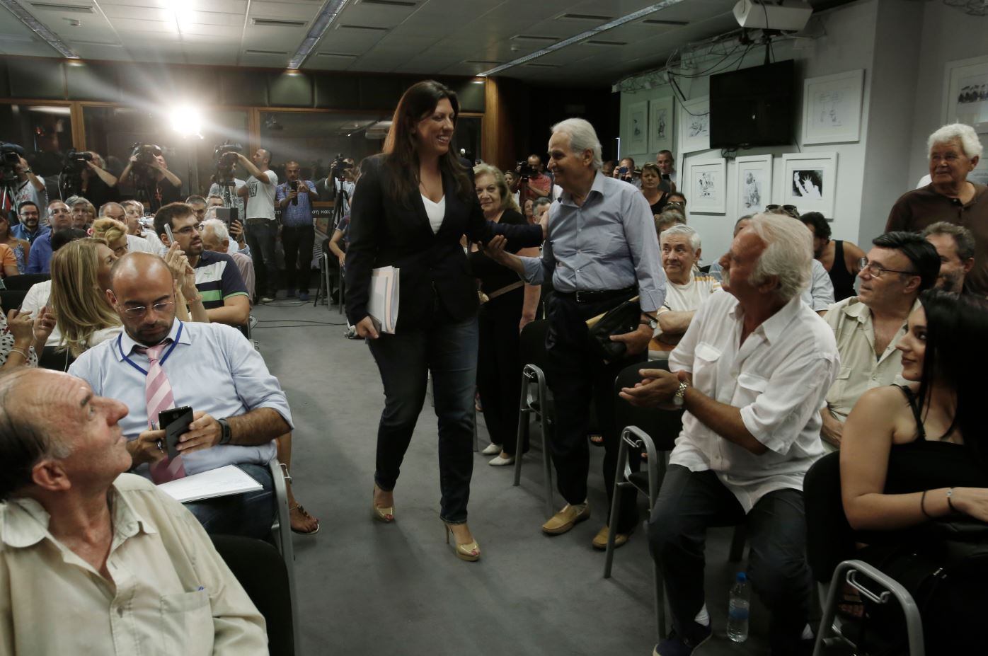 Λίγο πριν την έναρξη της συνέντευξης Τύπου στην ΕΣΗΕΑ, η Ζωή Κωνσταντοπούλου ήταν ιδιαίτερα χαμογελαστή, ενώ επέλεξε να φορέσει ένα σκούρο τζιν παντελόνι.