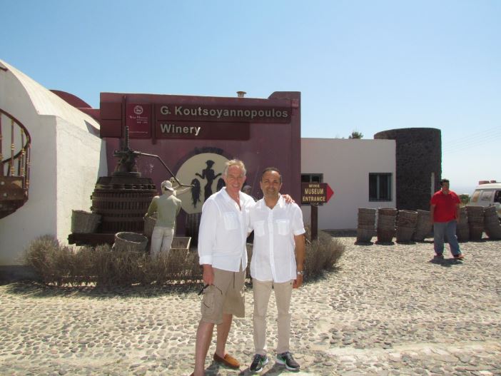 Ζήτησε να μάθει για τον μοναδικό τρόπο καλλιέργειας του Θηραϊκού αμπελώνα και δεν δίστασε να φωτογραφηθεί με τον ιδιοκτήτη του Οινοποιείου.