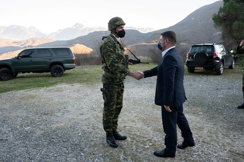 Στη συνέχεια, επισκέφθηκε το Επιτηρητικό Φυλάκιο «ΜΟΛΥΒΔΟΣΚΕΠΑΣΤΟΥ», στα ελληνοαλβανικά σύνορα, όπου και συναντήθηκε με τον Δήμαρχο Κόνιτσας κ. Νικόλαο Εξάρχου και τους τοπικούς εκπρόσωπους του επί της μεθορίου χωριού Μολυβδοσκέπαστη.