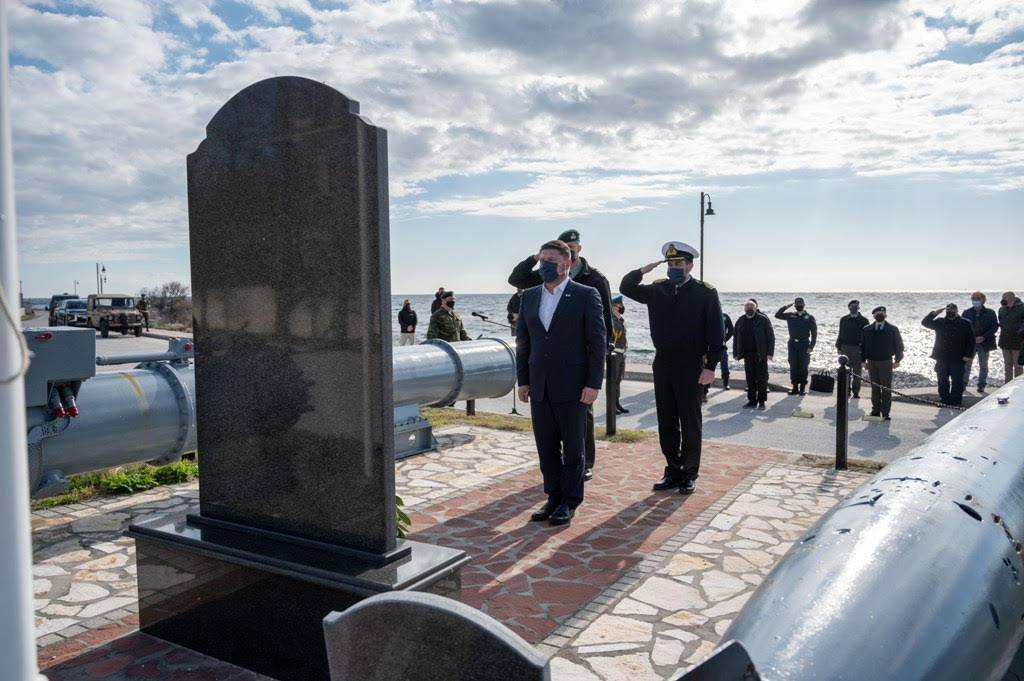 Επίσης, κατέθεσε στεφάνι στο μνημείο των 48 πεσόντων του Υ/Β «ΠΡΩΤΕΥΣ», το οποίο βυθίστηκε αύτανδρο βόρεια των Οθωνών, στις 29 Δεκεμβρίου 1940 κατά τον ελληνο-ιταλικό πόλεμο και επισκέφθηκε το Κέντρο Υγείας του νησιού που στελεχώνεται από στρατιωτικό ιατρό.