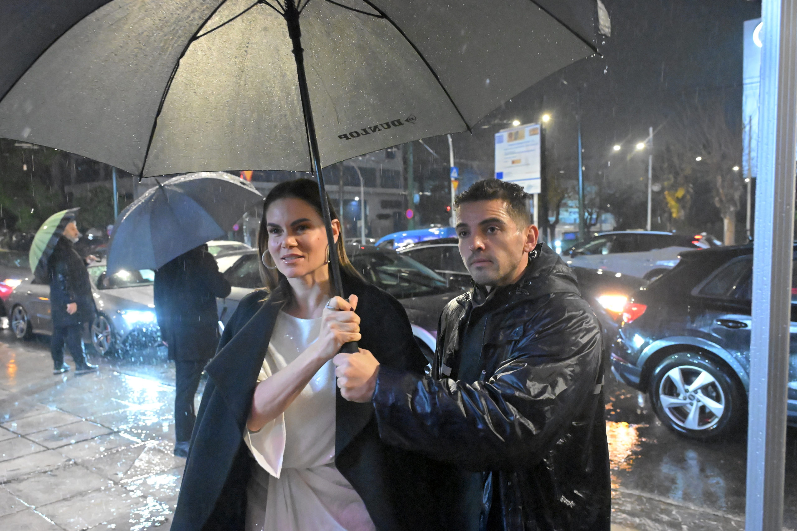 Παρά την ισχυρή κακοκαιρία που πλήττει το Λεκανοπέδιο, οι καλεσμένοι έφτασαν στον χώρο της προβολής με επίσημη ενδυμασία.
