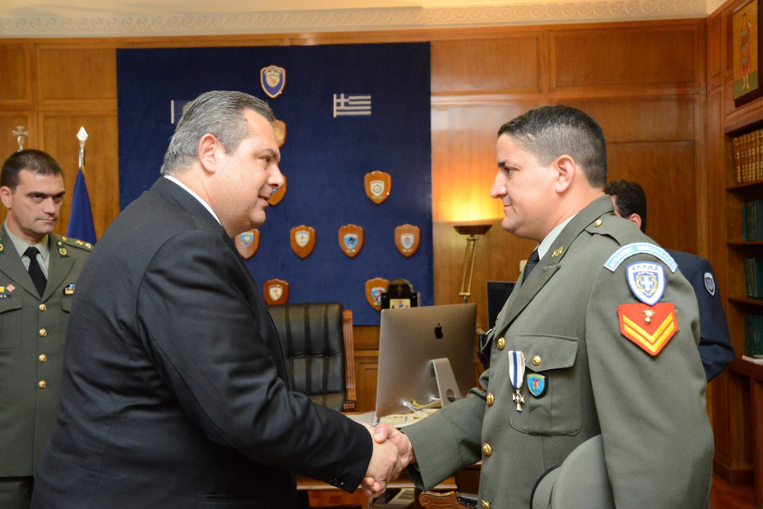 Το μετάλλιο Εξόχου Πράξεως απένειμε ο Πάνος Καμμένος στον Αντώνιο Ντεληγιώργη, τον λοχία που διέσωσε μετανάστες που είχαν ναυαγήσει στην Ρόδο, για το ήθος και την ανδρεία που επέδειξε κατά την επιχείρηση.