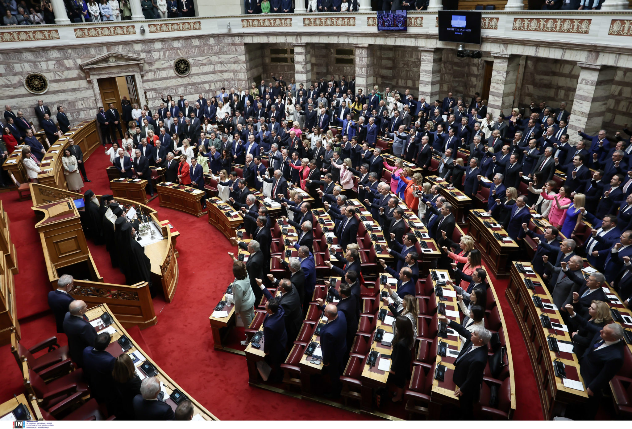Σε όλους τους χώρους μέσα κι έξω από τη Βουλή, γινόταν το αδιαχώρητο μέχρι την ώρα που οι βουλευτές εισήλθαν στην Ολομέλεια για την ορκωμοσία.