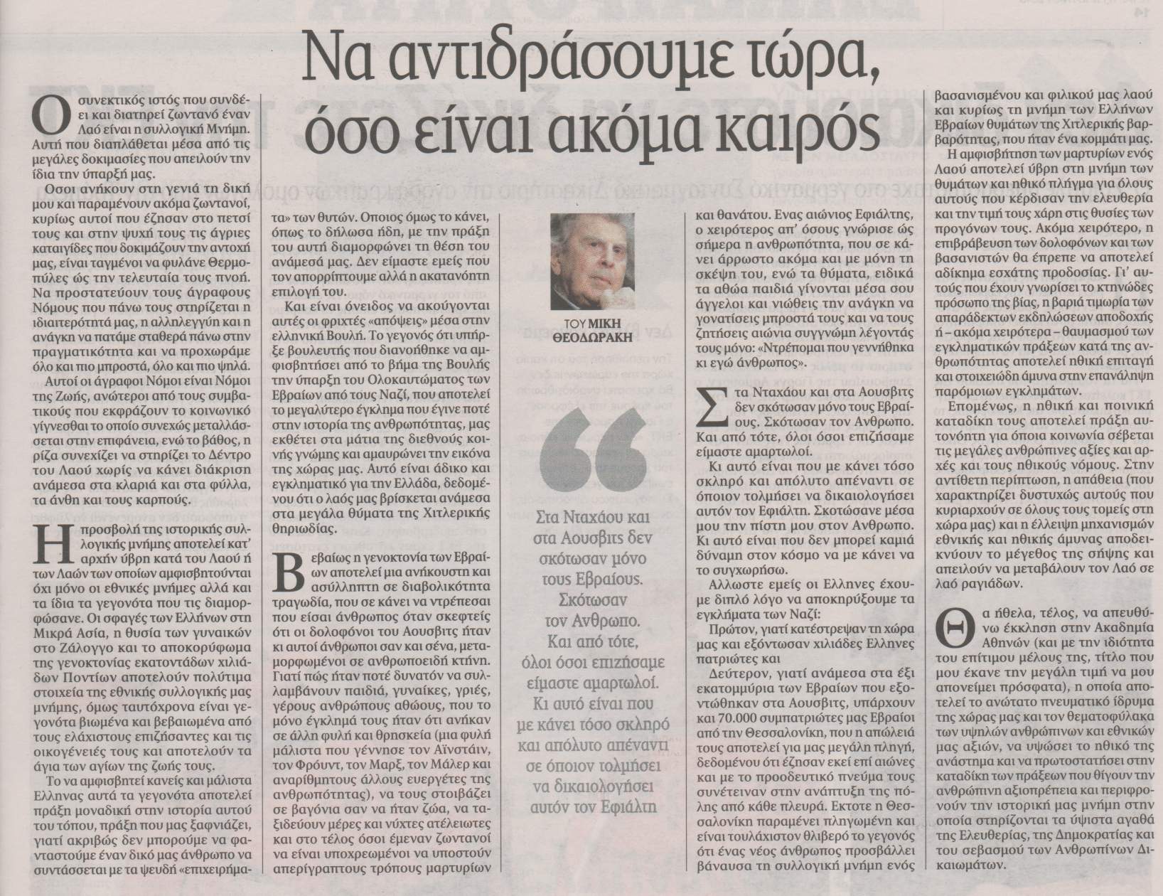 Άρθρο-παρέμβαση του Μίκη Θεοδωράκη στην εφημερίδα ΤΑ ΝΕΑ για τις πολιτικές εξελίξεις.
