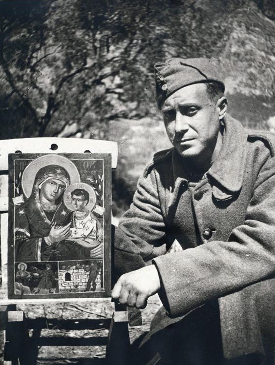 Ο σπουδαίος ζωγράφος Γιάννης Τσαρούχης. Με την “Παναγία της Νίκης” στα χέρια του.