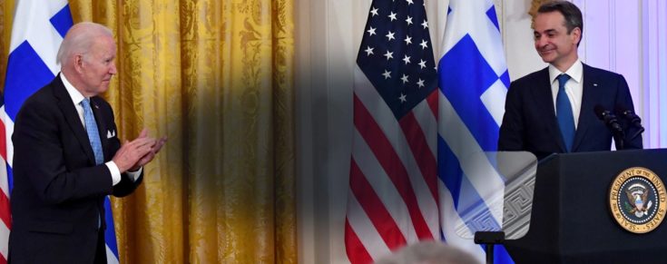 Aμέσως μετά, στο βήμα ανέβηκε ο Τζο Μπάιντεν, ο οποίος δήλωσε μεταξύ άλλων: «Καλωσορίζουμε τον κύριο πρωθυπουργό στην Ουάσιγκτον. Είχαμε συζητήσεις και είμαι ενθουσιασμένος που υποδεχόμαστε τη σύζυγο και τις κόρες σας και ξέρω πως η οικογένεια μετράει πολύ. Όλοι σκεφτόμαστε τον εκλιπόντα μπαμπά σας, ο οποίος είχε μεγάλη επιρροή πάνω μου. Ο μπαμπάς σας ήταν πραγματικός δάσκαλος. Πέρυσι έπρεπε να γιορτάσουμε τα 200 έτη από την απελευθέρωση διαδικτυακά λόγω της πανδημίας. Φέτος γιορτάζουμε τα 201 έτη και είναι ευκαιρία να κοιτάξουμε το μέλλον. Σήμερα η φιλία μας βρίσκεται στο απόγειό της. Αρέσουμε ο ένας στον άλλον. Οι λαοί μας εργάζονται μαζί στην ενέργεια, την κλιματική αλλαγή και σε πολλά ακόμα. Είναι μία σημαντική περίοδος, για να εδραιώσουμε τις σχέσεις μας. Η Ελλάδα είπε όχι στον Β’ Παγκόσμιο και ενέπνευσε τον κόσμο. Σήμερα καλούμαστε να αντιμετωπίσουμε την απρόκλητη εισβολή της Ρωσίας στην Ουκρανία. Έχουν γίνει φρικαλεότητες εκεί. Σκοτώνουν παιδιά. Θέλω να σας ευχαριστήσω για τη σαφή θέση που δείξατε από την αρχή κύριε πρωθυπουργέ. Όχι στην ιδέα ότι οι απολυταρχικές κυβερνήσεις θα επικρατήσουν. Ο Πούτιν θα λογοδοτήσει. Ακόμη και οι ζοφερότητες περίοδοι, θα πρέπει να μας υπενθυμίζουν ότι πάντα υπάρχει ελπίδα. Η λέξη κλειδί είναι η αξιοπρέπεια. Να κληροδοτήσουμε στα παιδιά μας έναν καλύτερο κόσμο. Αδημονούμε να τα πούμε και στην Ελλάδα».