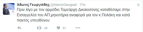 Διαβάστε αναλυτικά όσα έγραψε στο Twitter Άδωνις Γεωργιάδης.
