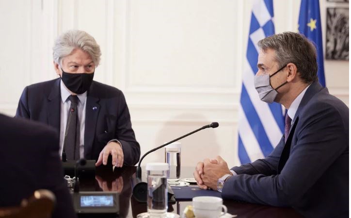 Οι ενέργειες που έχουν γίνει σε ευρωπαϊκό και εθνικό επίπεδο για την καταπολέμηση της πανδημίας καθώς και η συνεργασία που υπήρξε για την προμήθεια και διανομή εμβολίων και για τη δημιουργία του ευρωπαϊκού ψηφιακού πιστοποιητικού, ήταν μεταξύ των θεμάτων που συζητήθηκαν, κατά τη συνάντηση του Πρωθυπουργού Κυριάκου Μητσοτάκη με τον Επίτροπο αρμόδιο για την Εσωτερική Αγορά, Τιερί Μπρετόν στο Μέγαρο Μαξίμου.