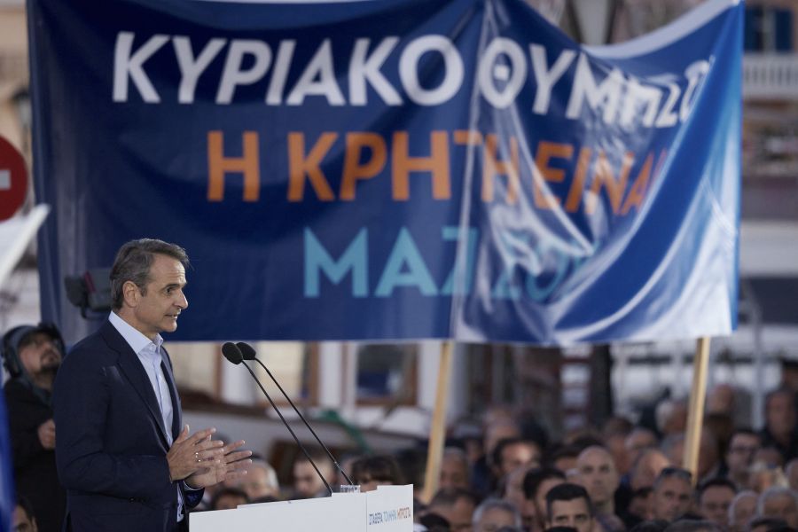 «Φίλες και φίλοι, τα φωτεινά σας πρόσωπα, τα χαμόγελά σας, οι σημαίες σας σημαίνουν πολλά για μένα. Η φωνή σας, ειδικά η φωνή της νεολαίας μας απλώνεται πάνω από τη θάλασσα από άκρη σε άκρη στην πατρίδα μας. Σήμερα οι Χανιώτισσες και οι Χανιώτες στέλνουν το δικό τους βροντερό μήνυμα ελπίδας. Ένα μήνυμα αυτοπεποίθησης, ένα σύνθημα νίκης, ώστε Κωνσταντίνου και Ελένης να γιορτάσουμε στα γαλάζια. Μπλε θα είναι όχι μόνο η Κρήτη, θα είναι όλη η Ελλάδα. Όλη η επικράτεια. Γιατί η Ελλάδα μας θυμάται, είδε και ξέρει. Δεν θέλει δεύτερη φορά στη συμφορά αλλά δίνει δεύτερη εντολή στην προκοπή. Και είναι αλήθεια, φίλες και φίλοι, ότι εδώ και τέσσερα χρόνια μαζί περάσαμε και ξεπεράσαμε πολλά. Από την υβριδική επίθεση στον Έβρο και τις μεταναστευτικές εισβολές μέχρι τις διαρκείς απειλές. Και από τα κύματα της πανδημίας ως τον πόλεμο της Ουκρανίας, τις αλυσιδωτές του συνέπειες, τη διεθνή ενεργειακή κρίση, τις εισαγόμενες ανατιμήσεις. Φίλες και φίλοι, καμία κυβέρνηση από τη μεταπολίτευση και μετά δεν αντιμετώπισε σε τόσο μικρό διάστημα τόσα μεγάλα εμπόδια και τόσες αντίξοες συνθήκες. Κι όμως, τις ξεπεράσαμε όλες. Και αυτές τις δυσκολίες, πολίτες και πολιτεία τις μετατρέψαμε σε επιτυχίες. Τα σύνορά μας έμειναν απόρθητα. Και με ένα γιγαντιαίο πρόγραμμα που ξεπέρασε τα 50 δισεκατομμύρια στηρίχθηκαν τα νοικοκυριά, οι επιχειρήσεις, οι θέσεις εργασίας. Είμαι σίγουρος ότι όλες οι επιχειρήσεις των Χανίων γνωρίζουν πολύ καλά τη στήριξη που τους παρείχαμε αυτά τα δύσκολα χρόνια. Κυβέρνηση ξανά εξαρτάται από όλες και από όλους. Αλλά θα μας εμπιστευθεί και πάλι η ελληνική κοινωνία. Θα μας εμπιστευθεί, φίλες και φίλοι, γιατί πρώτα και πάνω από όλα τηρήσαμε τις προεκλογικές μας δεσμεύσεις. Όταν είχα μιλήσει και πάλι εδώ στα Χανιά, πριν από τις εκλογές του Ιουλίου του ’19, να σας θυμίσω λίγο τι είχα δεσμευτεί. Τι σας είχα πει ότι θέλουμε να κάνουμε. Σας είχα πει ότι θέλω να μειώσω τους φόρους και τις εισφορές, να τονώσω το εισόδημα των Ελλήνων, να θωρακίσω τα σύνορά μας, να ενώσω την κοινωνία, και να αναβαθμίσω την Ελλάδα στο εξωτερικό. Το ερώτημα, λοιπόν, είναι: τα κάναμε όλα αυτά; Η απάντηση είναι: ναι, τα κάναμε.»
