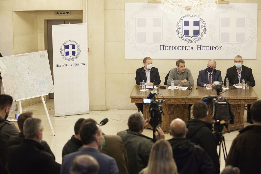 Τον πρωθυπουργό υποδέχθηκαν η πρόεδρος της ΔΕΕΠ, Λένα Σταμάτη, ο πρόεδρος της Βουλής και βουλευτής Ιωαννίνων, Κ. Τασούλας, και οι βουλευτές Ιωαννίνων, Γιώργος Αμυράς, Μαρία Αλεξάνδρα Στεφάνου Κεφάλα και ο βουλευτής Άρτας Γιώργος Στύλιος.
