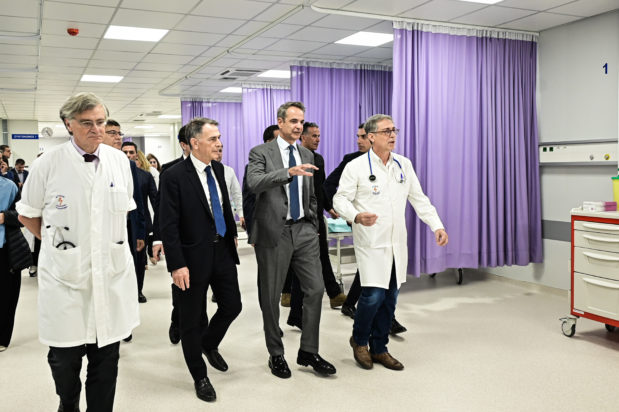 Ο πρωθυπουργός επισκέφτηκε σήμερα, Τετάρτη 15/10, το «Αττικό Νοσοκομείο» συνοδευόμενος από τον υπουργό Υγείας, Άδωνι Γεωργιάδη, και τον υφυπουργό Υγείας Μάριο Θεμιστοκλέους, για τα εγκαίνια του Ογκολογικού κέντρου «Αθηνά Ιωαν. Μαρτίνου» στο πλαίσιο της αναβάθμισης του ΕΣΥ.