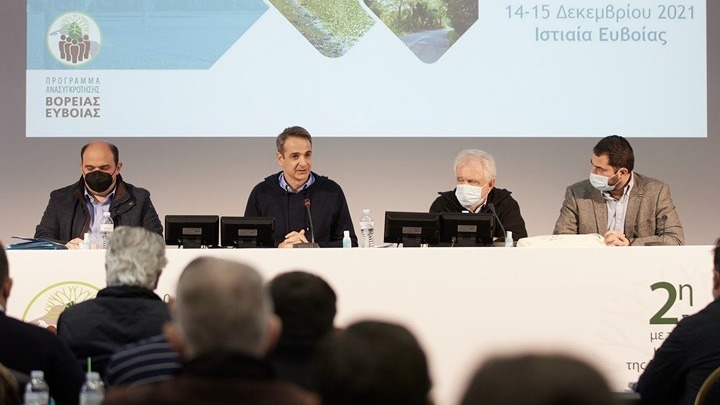 Στην ευρεία σύσκεψη στην Ιστιαία που διήρκεσε περισσότερες από πέντε ώρες, έγινε αναλυτική παρουσίαση του σχεδίου ανασυγκρότησης της βόρειας Εύβοιας μετά τις πυρκαγιές. «Στόχος μας είναι να μετατρέψουμε μια φυσική καταστροφή σε μια μεγάλη ευκαιρία αναγέννησης. Αυτός είναι ο στόχος μας και θα τον πετύχουμε», δήλωσε ο Πρωθυπουργός.