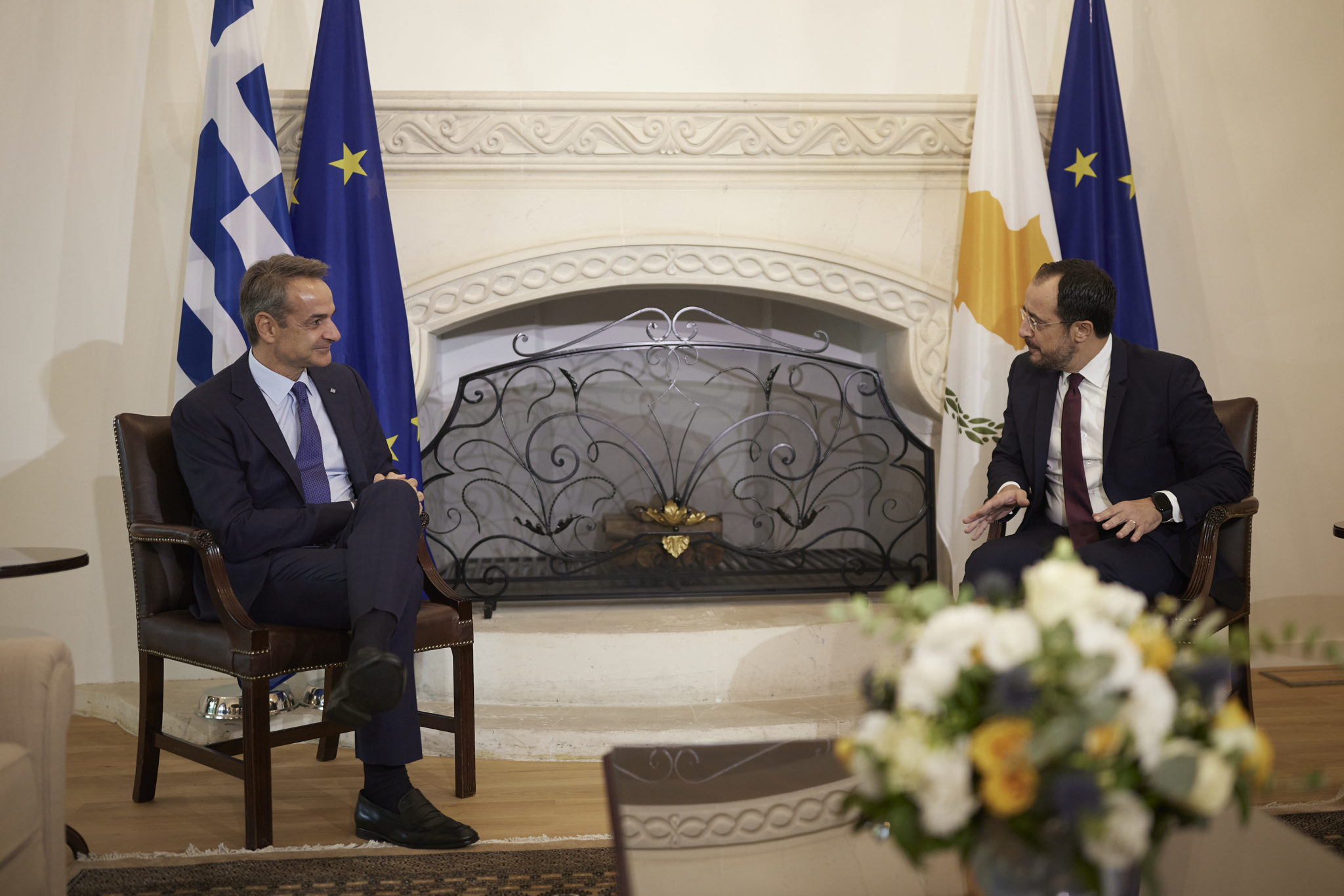 Ο Πρόεδρος της Κυπριακής Δημοκρατίας Νίκος Χριστοδουλίδης υποδέχθηκε, σήμερα, στο Προεδρικό Μέγαρο, τον Πρωθυπουργό Κυριάκο Μητσοτάκη, στο πλαίσιο της 9ης Τριμερούς Συνόδου Κορυφής Κύπρου – Ελλάδας – Ισραήλ που πραγματοποιείται στη Λευκωσία. Στις δηλώσεις του ο Κυριάκος Μητσοτάκης τόνισε τα εξής: