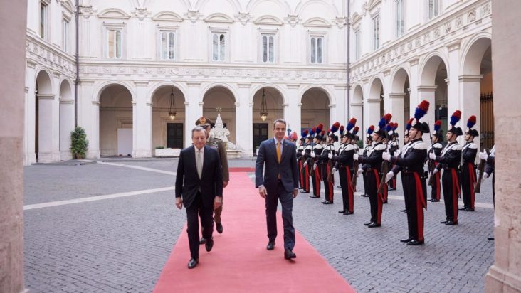 Ο πρωθυπουργός Κυριάκος Μητσοτάκης συναντήθηκε την Τετάρτη (22/06) με τον Ιταλό ομόλογό του, Μάριο Ντράγκι στο Παλάτσο Κίτζι στη Ρώμη.