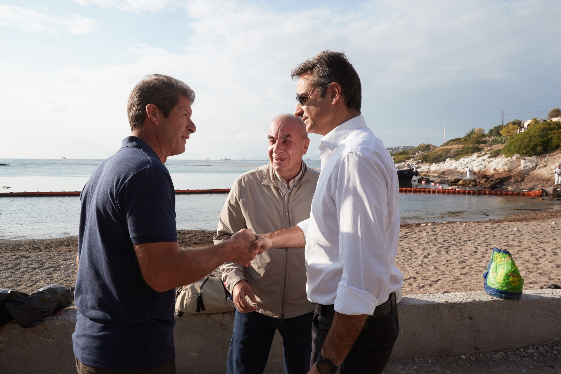 Τη Σαλαμίνα και την περιοχή όπου βυθίστηκε το δεξαμενόπλοιο “Αγία Ζώνη 2” επισκέφτηκε ο πρόεδρος της ΝΔ Κυριάκος Μητσοτάκης.