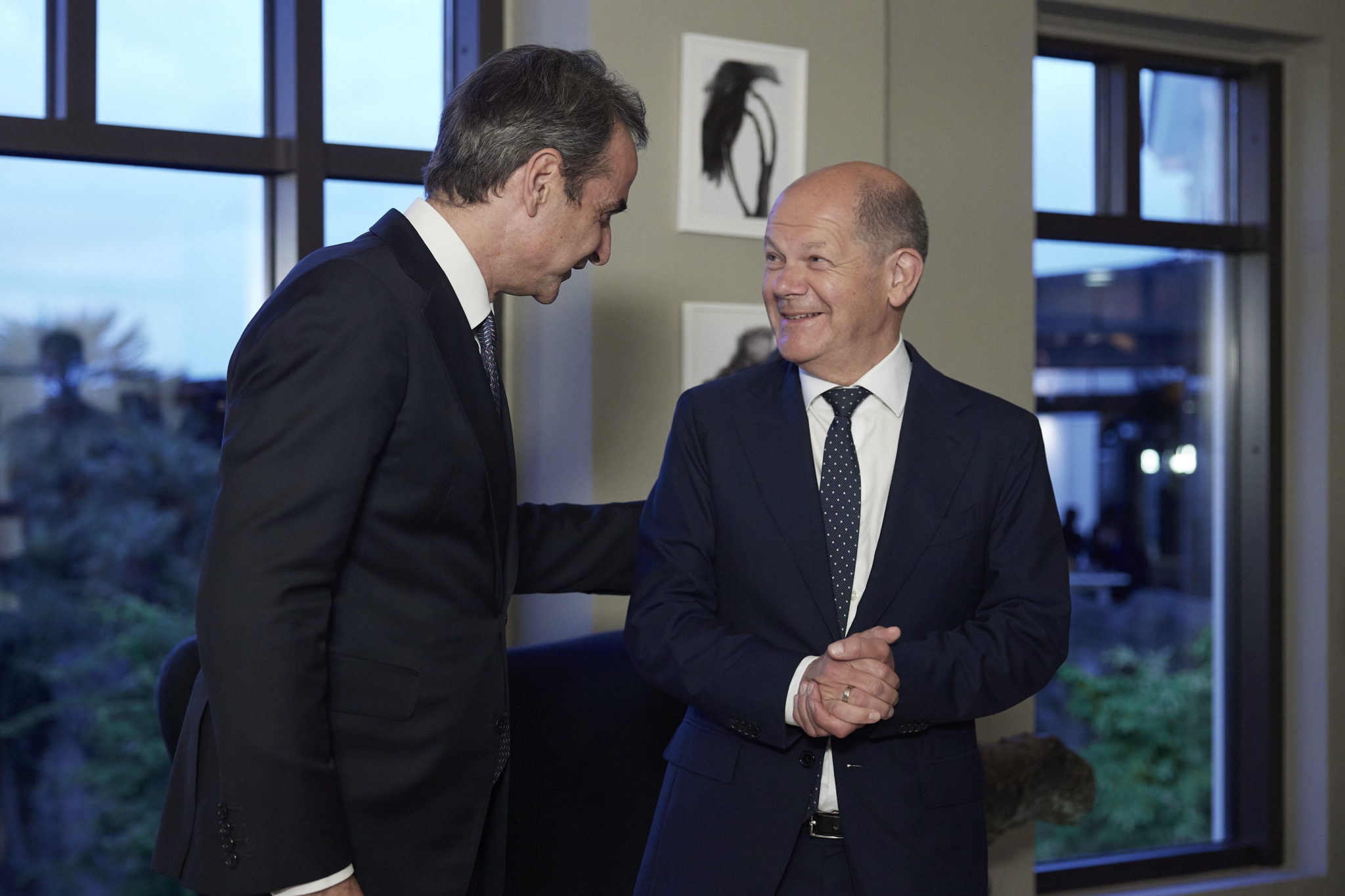O Κυριάκος Μητσοτάκης συναντήθηκε με τον Όλαφ Σολτς στη Θεσσαλονίκη, λίγο πριν ξεκινήσει το δείπνο των ηγετών που συμμετείχαν στη Σύνοδο των χωρών της Νοτιοανατολικής Ευρώπης