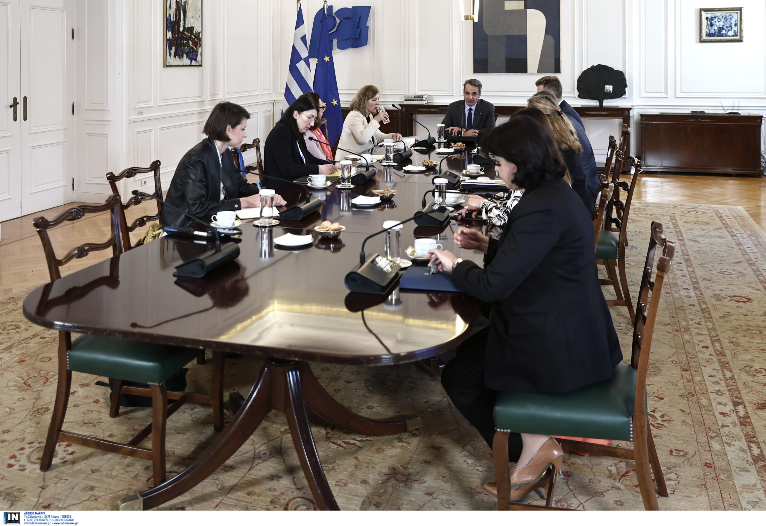Με την αντιπρόεδρο της Ευρωπαϊκής Επιτροπής, αρμόδια για τις Αξίες και τη Διαφάνεια, Βιέρα Γιούροβα συναντήθηκε το πρωί στο Μέγαρο Μαξίμου ο Κυριάκος Μητσοτάκης.