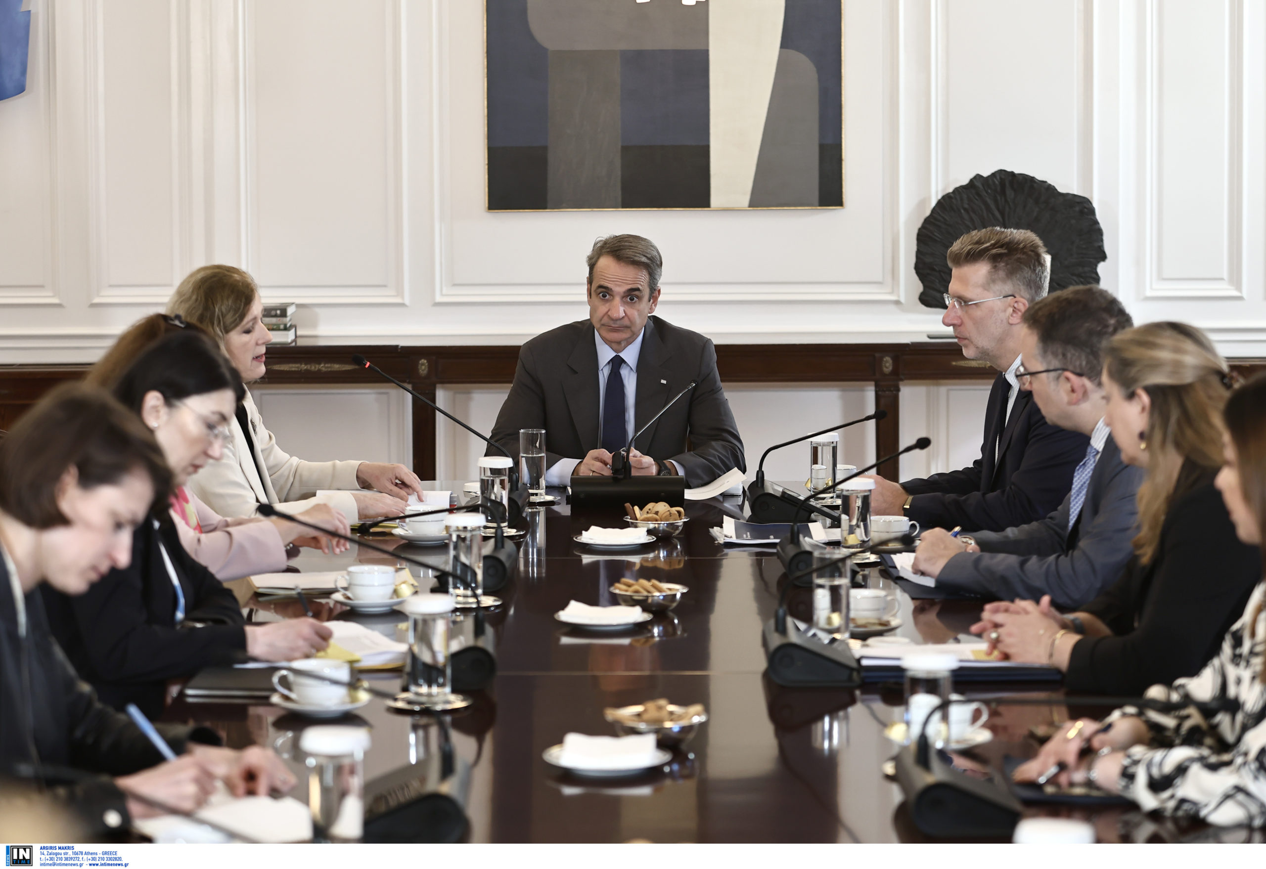 Με την αντιπρόεδρο της Ευρωπαϊκής Επιτροπής, αρμόδια για τις Αξίες και τη Διαφάνεια, Βιέρα Γιούροβα συναντήθηκε το πρωί στο Μέγαρο Μαξίμου ο Κυριάκος Μητσοτάκης.