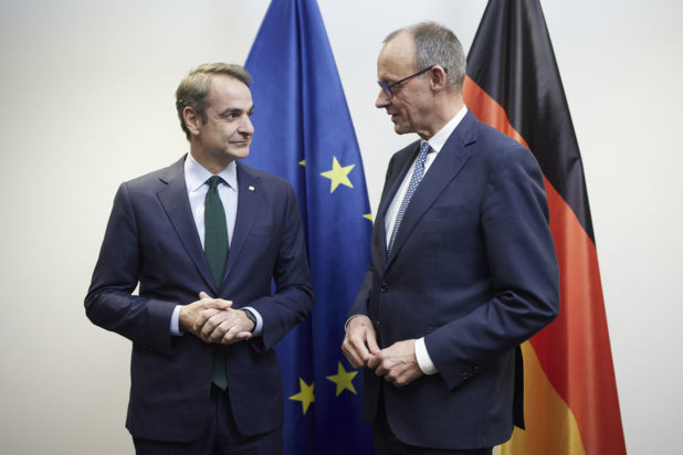 Θέματα αμοιβαίου και ευρωπαϊκού ενδιαφέροντος, με έμφαση στην οικονομία και την ανταγωνιστικότητα της Ευρωπαϊκής Ένωσης, οι επικείμενες εκλογές στην Γερμανία, αλλά και η δυναμική ανάκαμψη της ελληνικής οικονομίας, απασχόλησαν την συνάντηση που είχε νωρίτερα απόψε ο πρωθυπουργός Κυριάκος Μητσοτάκης με τον πρόεδρο του Χριστιανοδημοκρατικού Κόμματος (CDU) και υποψήφιο καγκελάριο Φρίντριχ Μερτς, στο περιθώριο της συνόδου των ηγετών του Ευρωπαϊκού Λαϊκού Κόμματος που πραγματοποιείται στο Βερολίνο, σύμφωνα με πληροφορίες.