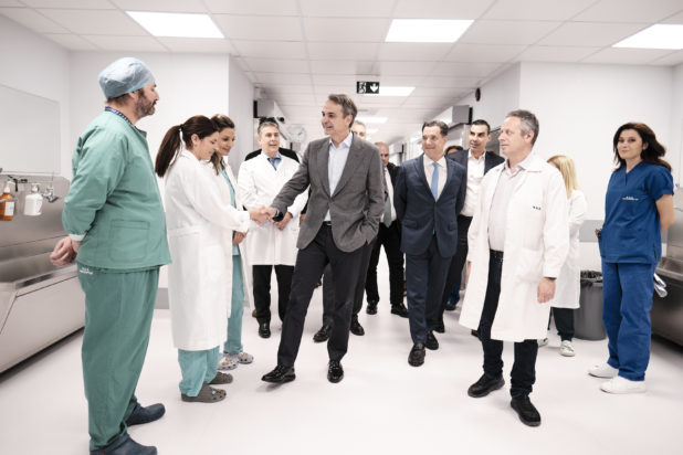 «Το Εθνικό Σύστημα Υγείας αλλάζει» τόνισε ο Πρωθυπουργός, Κυριάκος Μητσοτάκης, ο οποίος επισκέφτηκε σήμερα το Γενικό Αντικαρκινικό Ογκολογικό Νοσοκομείο Αθηνών «Άγιος Σάββας», όπου νωρίτερα πραγματοποιήθηκαν τα εγκαίνια εννέα ανακαινισμένων χειρουργικών κλινών.