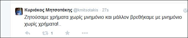 «Ζητούσαμε χρήματα χωρίς μνημόνιο και μάλλον βρεθήκαμε με μνημόνιο χωρίς χρήματα!..», έγραψε ο βουλευτής της Νέας Δημοκρατίας.