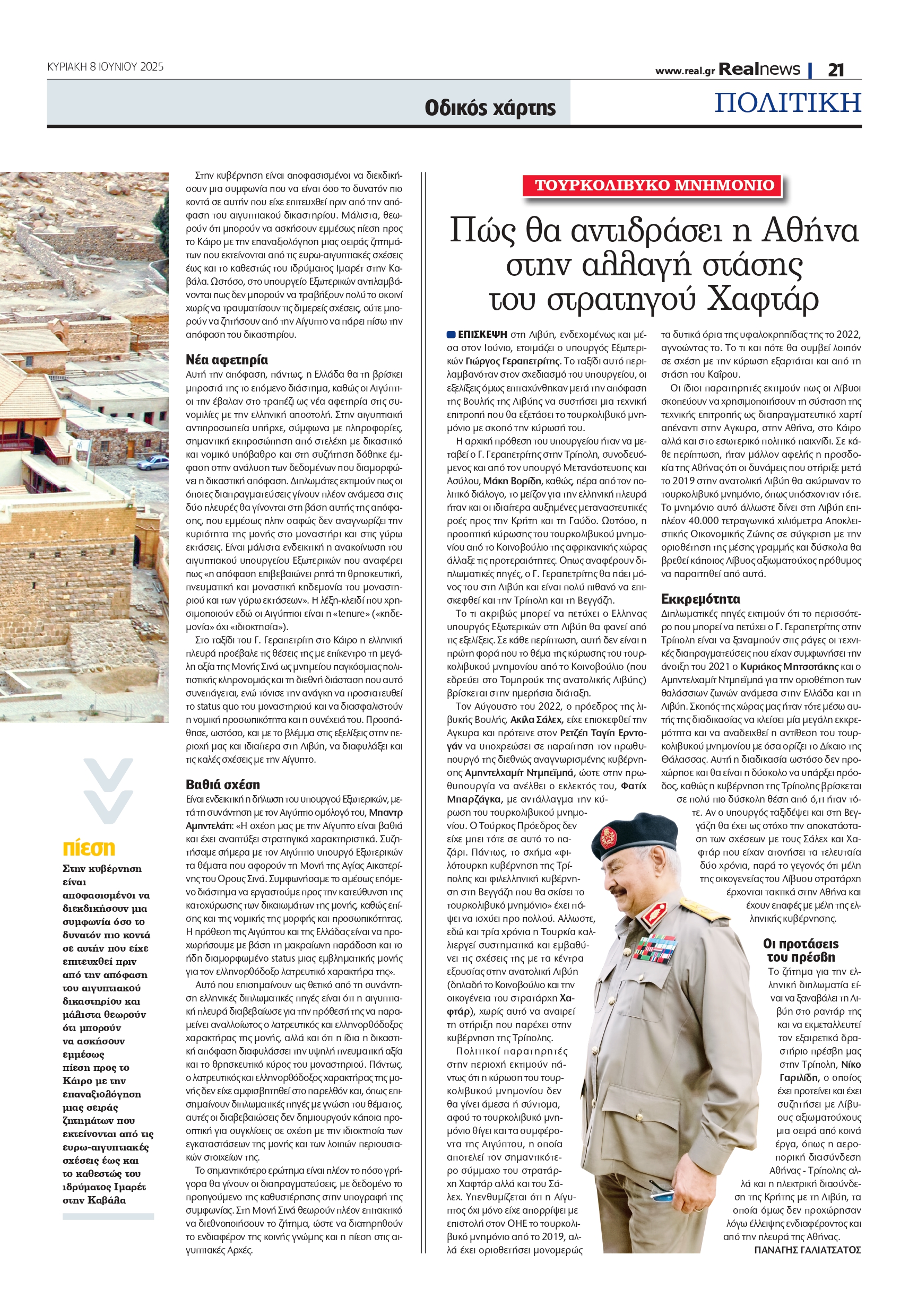 Οι ίδιοι παρατηρητές εκτιμούν πως οι Λίβυοι σκοπεύουν να χρησιμοποιήσουν τη σύσταση της τεχνικής επιτροπής ως διαπραγματευτικό χαρτί απέναντι στην Αγκυρα, στην Αθήνα, στο Κάιρο αλλά και στο εσωτερικό πολιτικό παιχνίδι. Σε κάθε περίπτωση, ήταν μάλλον αφελής η προσδοκία της Αθήνας ότι οι δυνάμεις που στήριξε μετά το 2019 στην ανατολική Λιβύη θα ακύρωναν το τουρκολιβυκό μνημόνιο, όπως υπόσχονταν τότε.