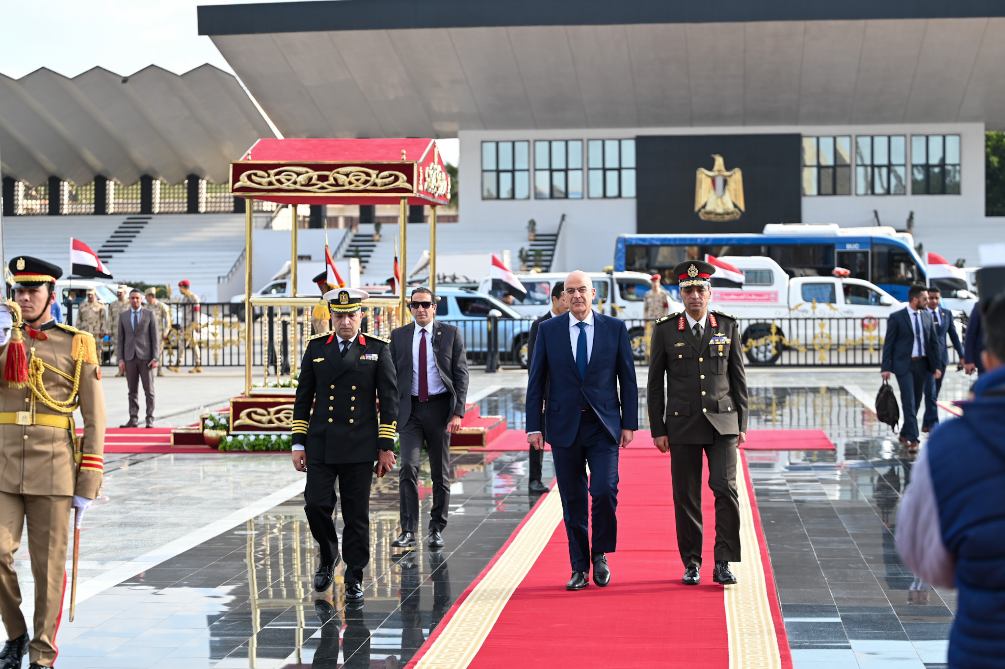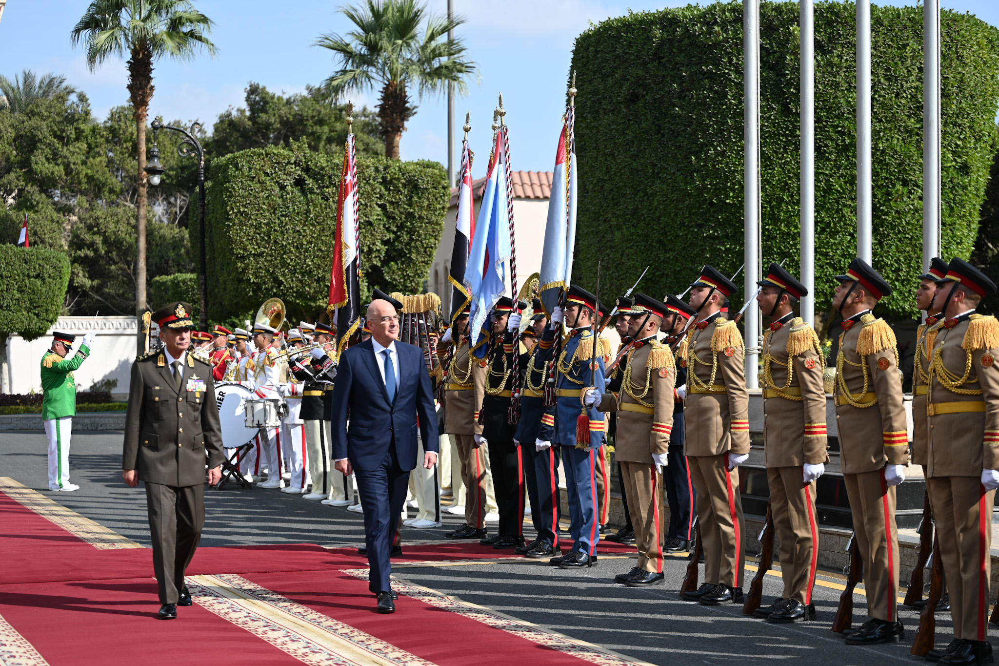 Στο πλαίσιο της επίσκεψης ο κ. Δένδιας έγινε δεκτός από τον Πρόεδρο της Αιγύπτου Abdel Fattah Εl–Sisi στο Ανάκτορο Al – Ittihadiya.