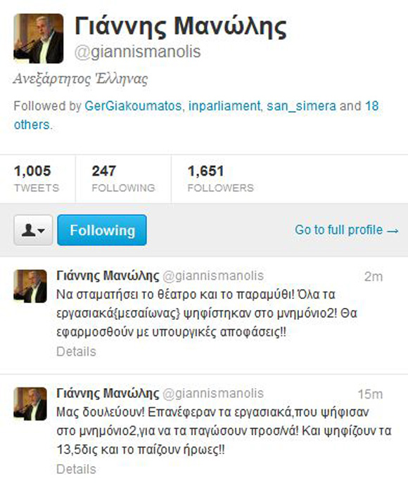 Διαβάστε τι έγραψε στον λογαριασμό του στο Twitter ο Γιάννης Μανώλης, σχολιάζοντας την εμπλοκή που έχει παρουσιαστεί με το “πάγωμα” των εργασιακών…