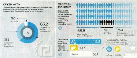 Από την ίδια έρευνα προκύπτει ότι το 63,2% συμφωνεί με την απόφαση που έλαβε η Βουλή για αναστολή της χρηματοδότησης της Χρυσής Αυγής.