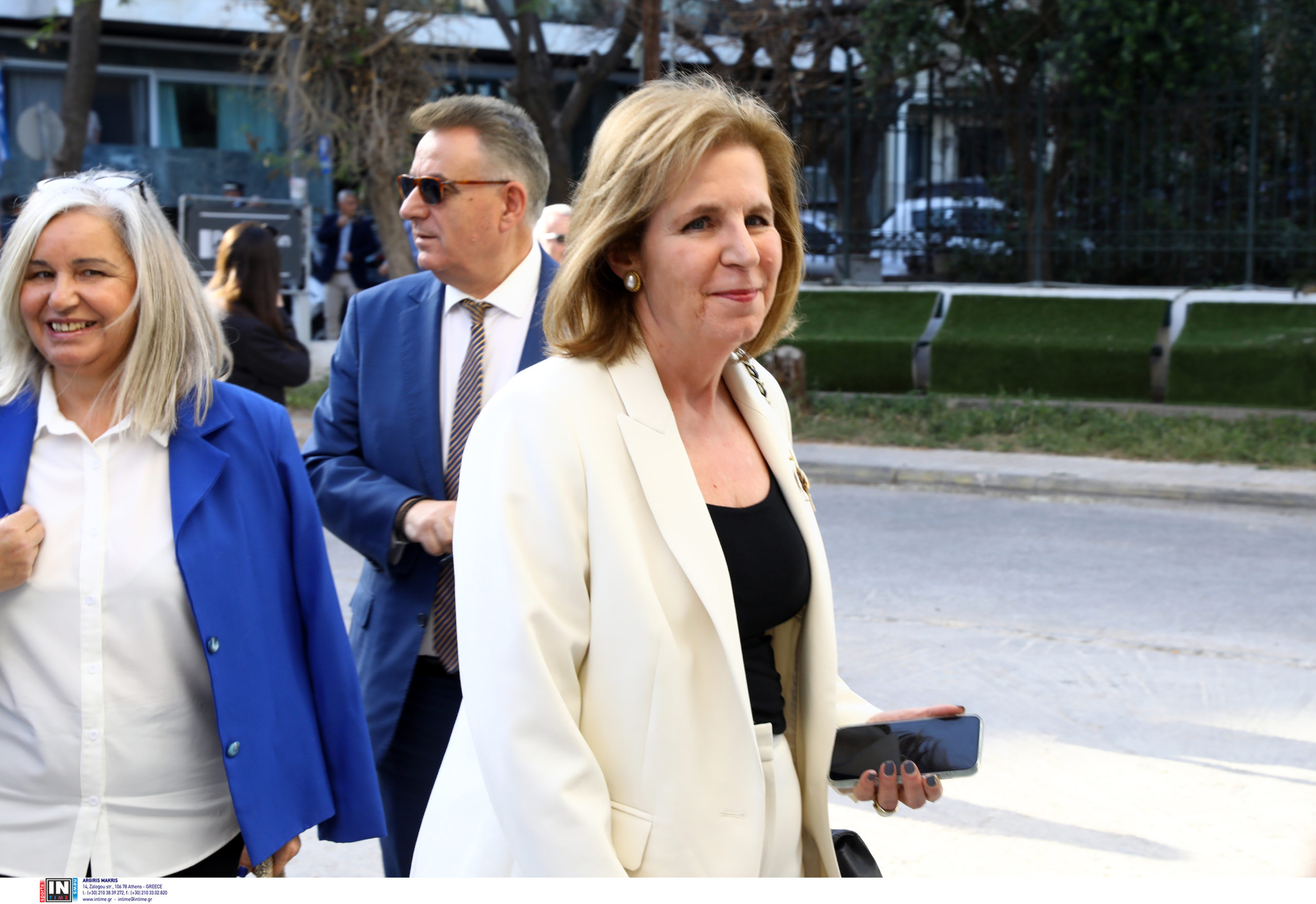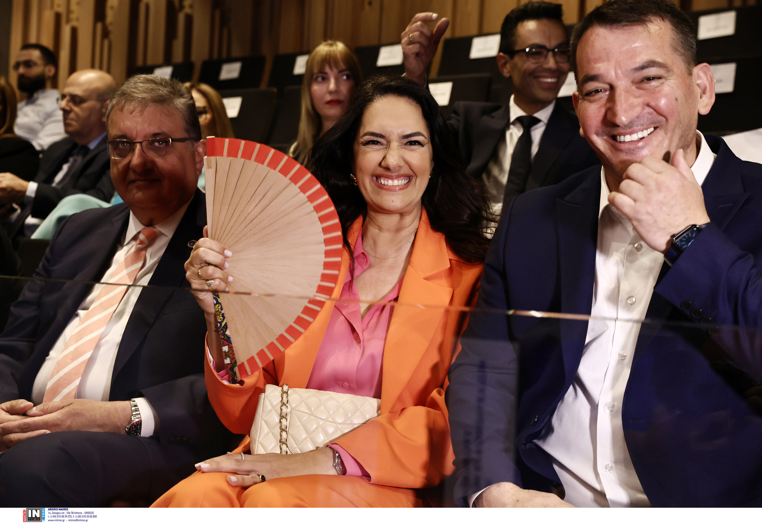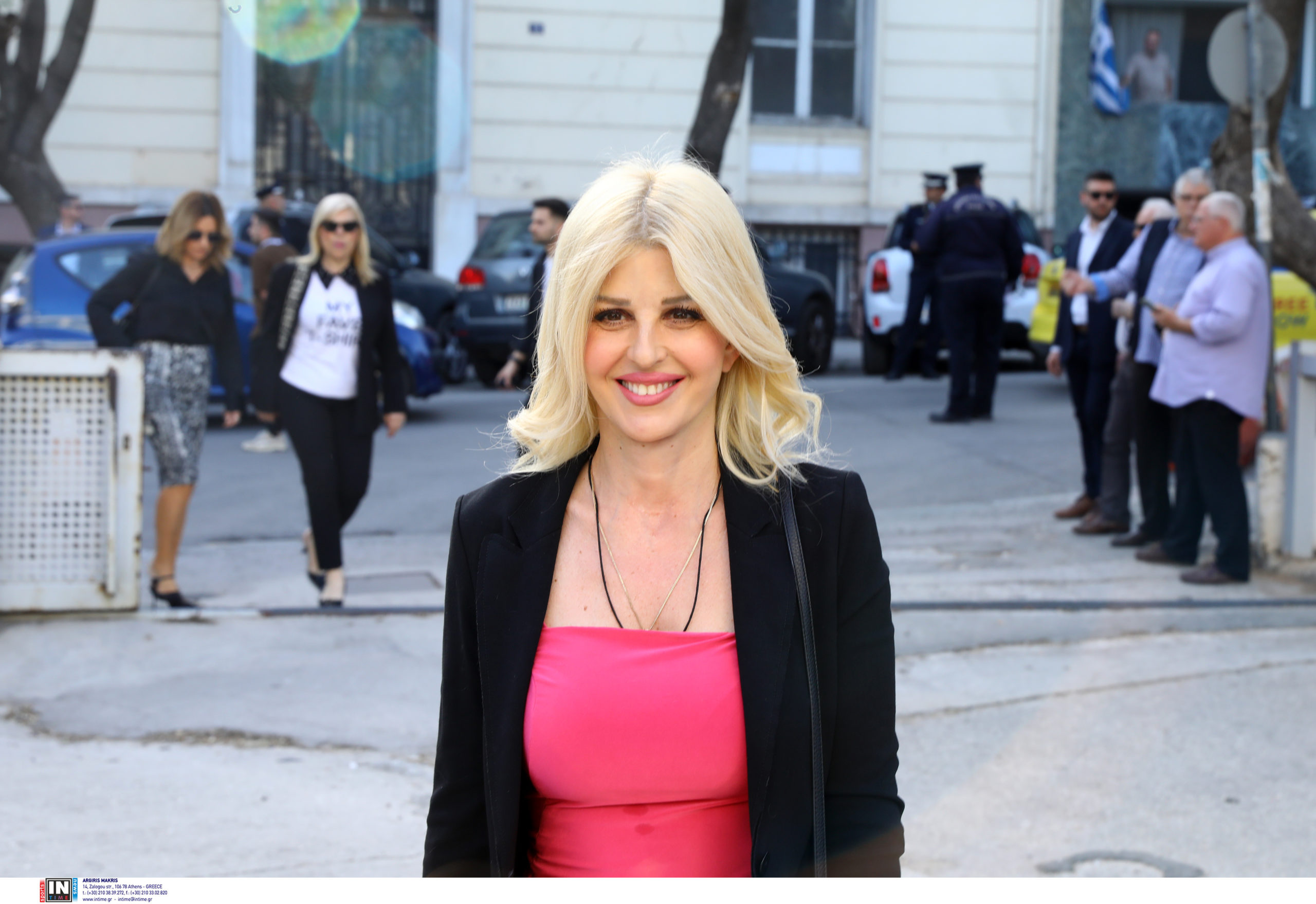 Η Βούλα Πατουλίδου φτάνει στον χώρα όπου έγινε η παρουσίαση.